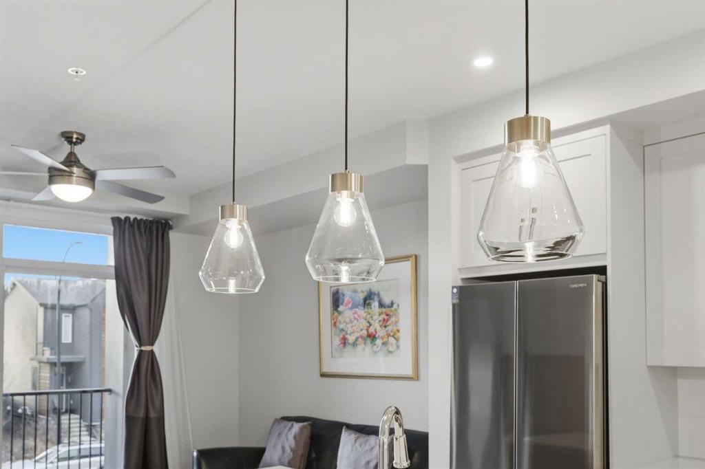 The open-concept living area is bright and inviting with upgraded lighting, pot lights, dimmer switches, and a ceiling fan for added comfort. Luxury Vinyl Plank flooring flows seamlessly through the main living areas and primary bedroom, offering a modern look with durable performance. Step outside to your private balcony complete with a gas line for BBQing, perfect for summer evenings. This home also includes AIR CONDITIONING for those warm Calgary days.