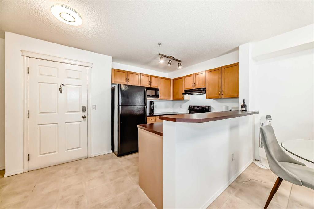 Immediate possession for this one bedroom condo with a den/eating area in popular Panamount Place! This unit has an open concept layout & features a kitchen with upgraded maple cabinets, black appliances & a breakfast bar which overlooks the living room with patio door to a spacious balcony. The Large bedroom is just off the living room with a walk-in closet & full en-suite bath. The unit also comes with a separate titled heated underground parking (stall #26) with storage space. Don’t miss out, call to view today.