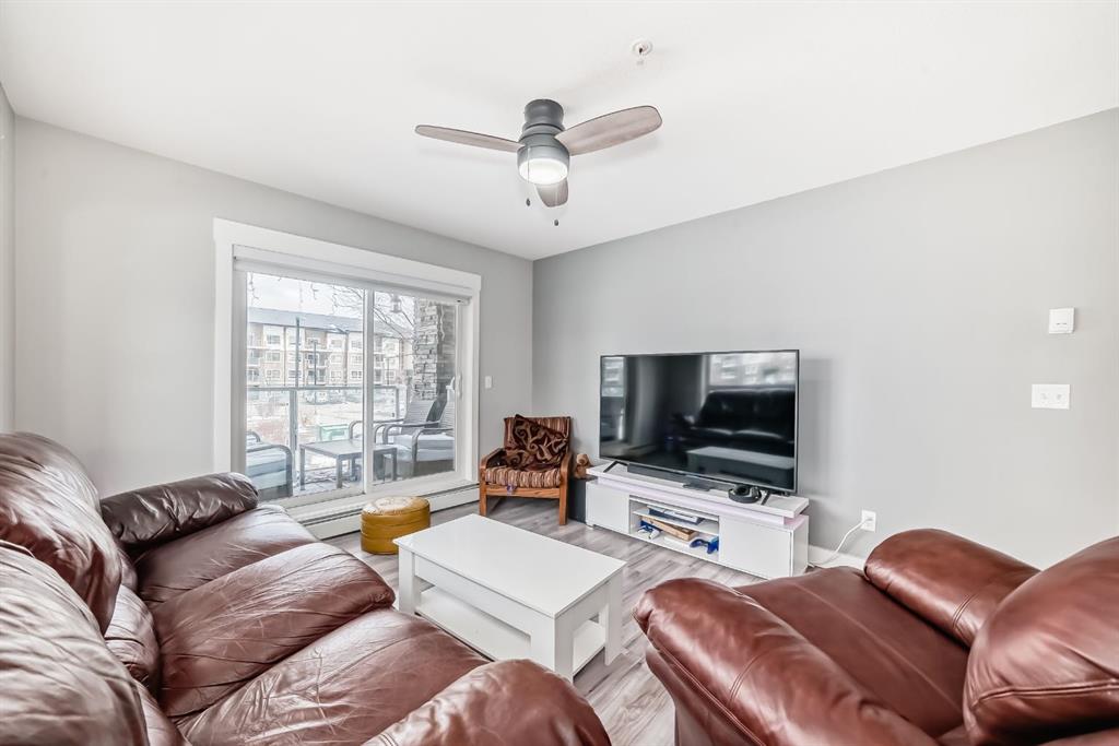 Welcome to this beautifully maintained and UPGRADED CORNER UNIT CONDO, located on the second floor offers over 943.5 sq ft of comfortable living space, featuring 2 spacious bedrooms, 2 full bathrooms, and the convenience of titled heated underground parking and secure caged storage locker. As you enter, you’ll be greeted by an open-concept design that includes a well-appointed kitchen, a dining area, and a versatile flex space perfect for an office. The kitchen is a chef’s dream, featuring a large counter with bar seating, granite countertops, stainless steel appliances. The owner has invested over $15k in upgrades including CUSTOM CABINETRY , HALL TREE ENTRYWAY BENCH ,COAT RACK with SHOE STORAGE, SMART LOCK for main DOOR , WATER PURIFIER ,SAMSUNG DISHWASHER, NEW LIGHT FIXTURES( Kitchen and dining) and BOTH WASHROOMS FIXTURES, New VINYL PLANK FLOORING (no carpet) has been installed throughout the unit, PATIO TILES, REMOTE CONTROLLED ZEBRA BLINDS for all windows and CEILINGS FANS in both bedrooms and Living room add extra convenience and comfort and beautiful Balcony to spend time with friends ,enjoying BBQ.Located in the vibrant Skyview Ranch community, this condo offers easy access to local amenities, parks, schools, shopping, and major roadways. Whether you’re a first-time homebuyer, a growing family, or someone looking for a modern, low-maintenance property,