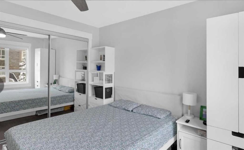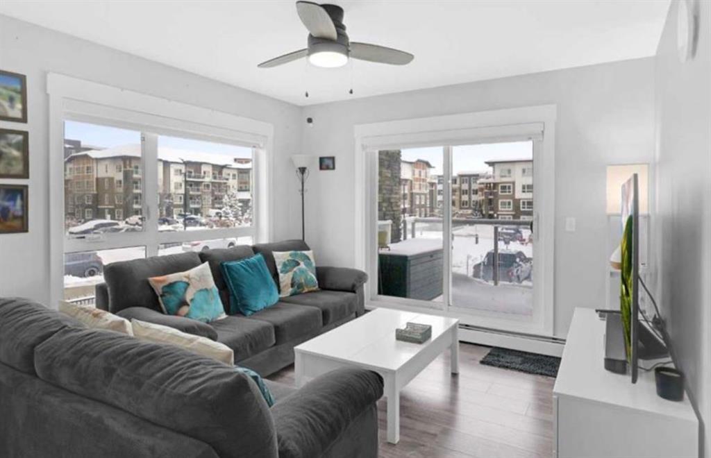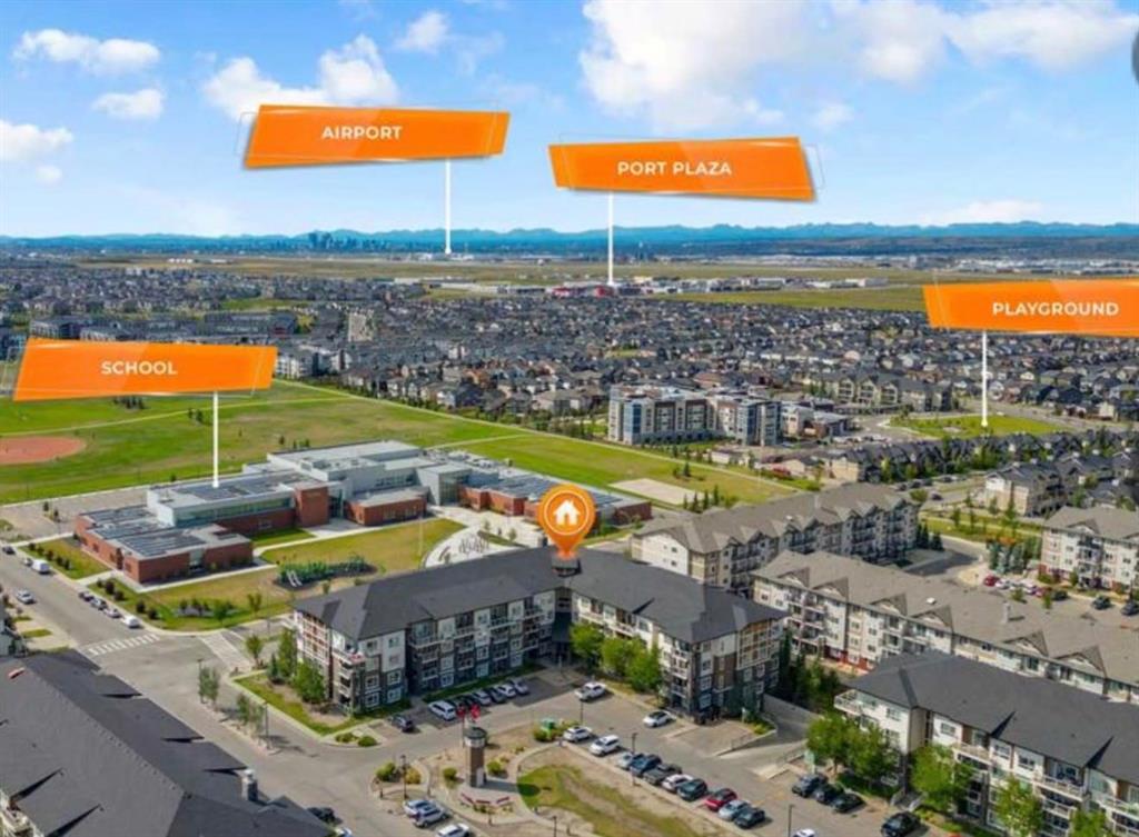 Welcome to this beautifully maintained and UPGRADED CORNER UNIT CONDO, located on the second floor offers over 943.5 sq ft of comfortable living space, featuring 2 spacious bedrooms, 2 full bathrooms, and the convenience of titled heated underground parking and secure caged storage locker. As you enter, you’ll be greeted by an open-concept design that includes a well-appointed kitchen, a dining area, and a versatile flex space perfect for an office. The kitchen is a chef’s dream, featuring a large counter with bar seating, granite countertops, stainless steel appliances. The owner has invested over $15k in upgrades including CUSTOM CABINETRY , HALL TREE ENTRYWAY BENCH ,COAT RACK with SHOE STORAGE, SMART LOCK for main DOOR , WATER PURIFIER ,SAMSUNG DISHWASHER, NEW LIGHT FIXTURES( Kitchen and dining) and BOTH WASHROOMS FIXTURES, New VINYL PLANK FLOORING (no carpet) has been installed throughout the unit, PATIO TILES, REMOTE CONTROLLED ZEBRA BLINDS for all windows and CEILINGS FANS in both bedrooms and Living room add extra convenience and comfort and beautiful Balcony to spend time with friends ,enjoying BBQ.Located in the vibrant Skyview Ranch community, this condo offers easy access to local amenities, parks, schools, shopping, and major roadways. Whether you’re a first-time homebuyer, a growing family, or someone looking for a modern, low-maintenance property,