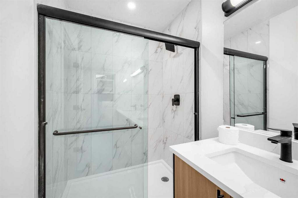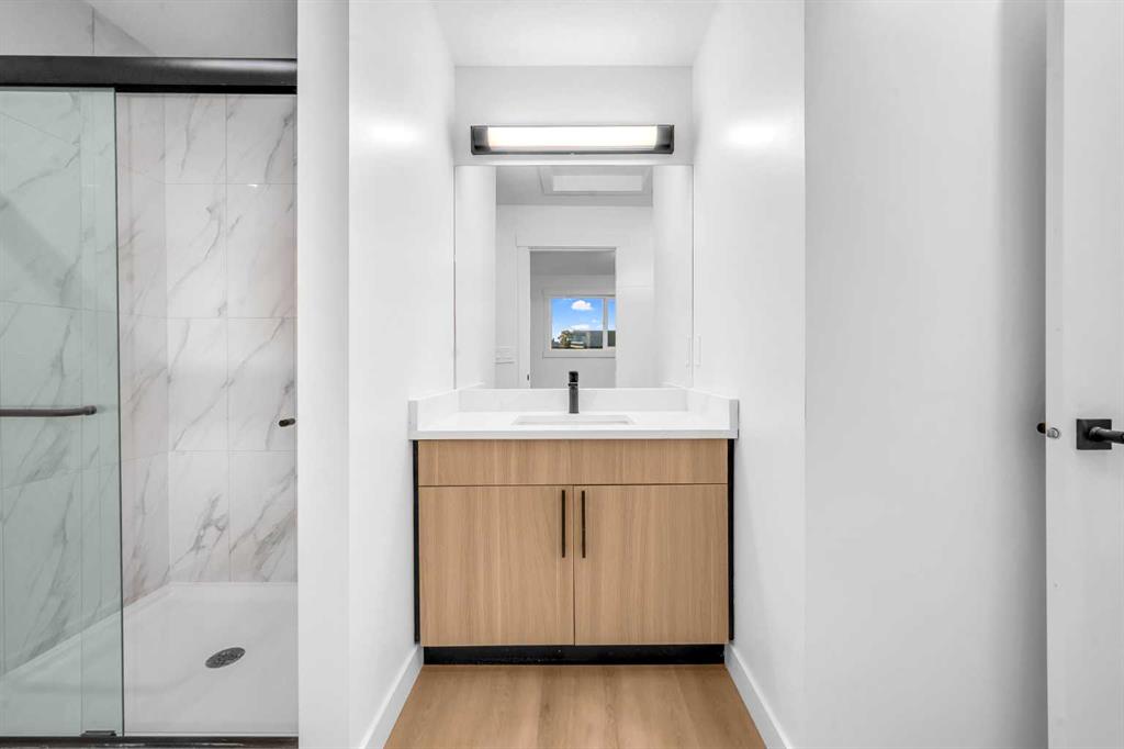 Luxury vinyl plank flooring runs throughout all four levels, paired with stylish, modern light fixtures that add warmth and cohesion to every room. On the upper level, you’ll find two generously sized bedrooms — each complete with its own private ensuite. The primary suite is a true retreat, featuring a double vanity, quartz counters, and a custom-tiled luxury shower.