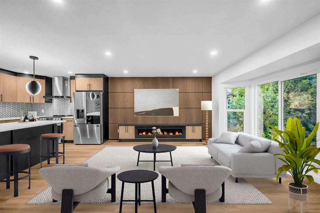 Step inside to a thoughtfully designed layout featuring high-end finishes and a seamless blend of comfort and style. The main level offers a welcoming living space with an electric fireplace set against eye-catching luxury slat wall panels. The kitchen is brand new and showcases custom cabinetry, elegant quartz countertops, and modern finishes that make it the perfect space for cooking and entertaining.
