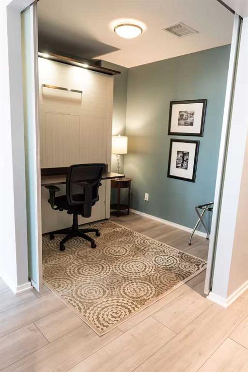 Welcome to an exceptional opportunity to own a turn-key, fully furnished downtown condo offering the perfect blend of style and functionality. Ideally situated in the heart of Calgary, this beautifully appointed residence places you just steps from vibrant dining, shopping, transit, and the city’s most sought-after amenities, delivering an unbeatable urban lifestyle. Thoughtfully designed with both comfort and versatility in mind, the open-concept layout is complemented by contemporary finishes and an abundance of natural light. The unit comes fully outfitted with all furniture and furnishings, making it completely move-in ready. A standout feature is the multi-functional den equipped with a built-in Murphy bed, effortlessly transforming the space into an additional sleeping area—perfect for maximizing both livability and flexibility. The well-appointed kitchen flows seamlessly into the living and dining areas, creating an inviting space for entertaining or relaxing after a day in the city. Additional highlights include a brand new in-suite washer and dryer, adding everyday convenience and value, along with access to sought-after building amenities (varies by building, such as fitness or pool where applicable). This is a rare opportunity to own a fully equipped, professionally curated condo in a prime downtown location.