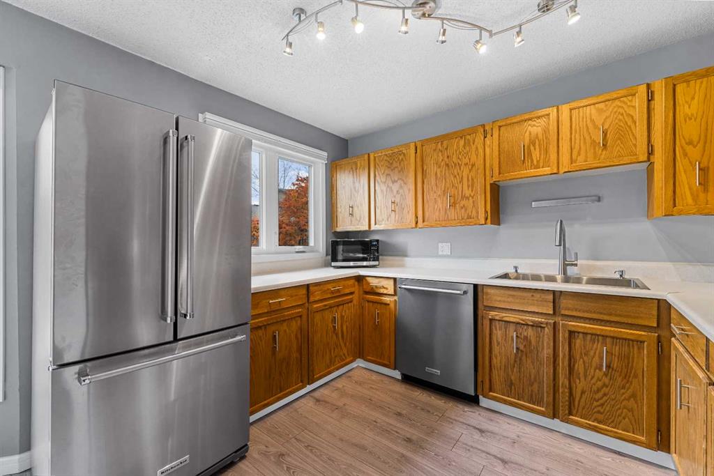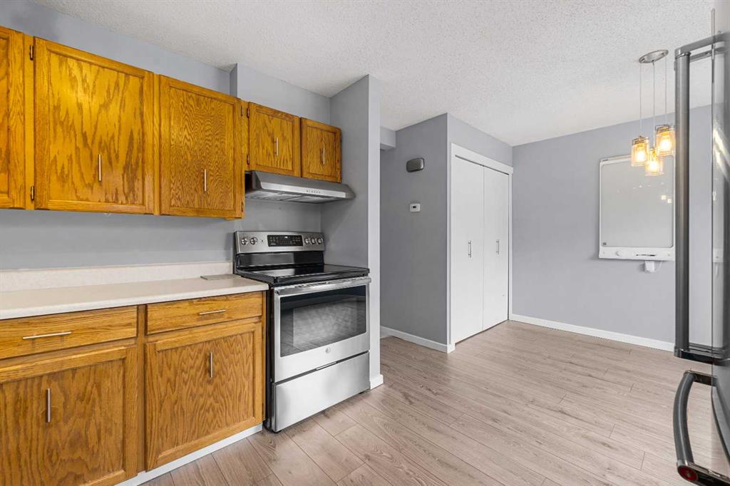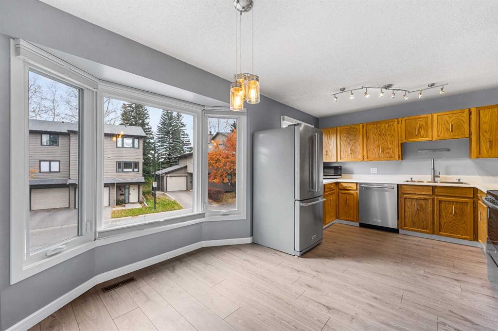 Throughout the home you’ll find laminate flooring, newer baseboards, dimmers and updated light fixtures and top-down bottom-up blinds on the bay and kitchen windows.