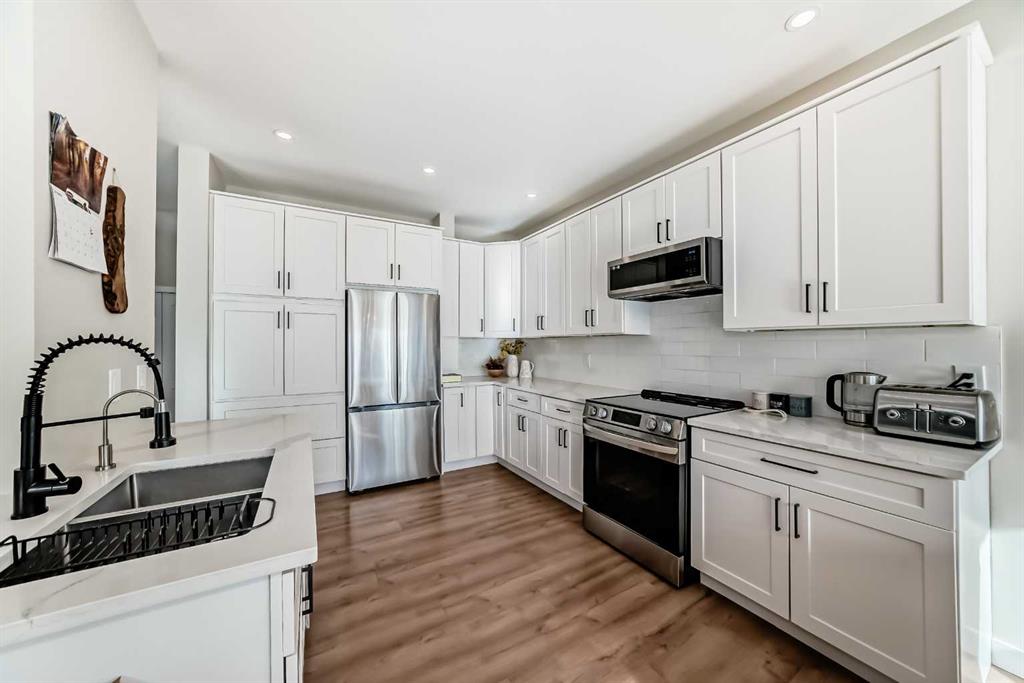 NO NEIGHBOURS BEHIND, JUST UNOBSTRUCTED VIEWS!!! on a huge South facing Pie shaped lot!! Welcome to your beautifully renovated dream home in Bridlewood! with over 2190sqft of developed space. This stunning 4-bedroom, 3-bathroom gem has undergone a massive transformation, leaving no detail untouched. Step inside to discover a modern oasis, with tons of natural light pouring in from almost every angle, where style truly meets functionality. The heart of this home is the brand-new kitchen, adorned with up-to-date colors and all new stainless-steel appliances Quarts countertops and island. All new doors, new Carpet, new modern steel Rallings, and new Luxury vinyl plank flooring. Gleaming new cabinets offer ample storage space, while the fresh paint and casements and baseboards provide a clean and contemporary feel. Convenient main floor DEN/OFFICE , All new triple pane casement windows throughout the home for that natural light. Spacious living room with corner three-sided fireplace for those cozy winter days. The brand-new LED lighting throughout the property can be changed from warm to cool lighting via remote control in most rooms, allowing you to customize any room to your preference. Cooking and entertaining have never been this enjoyable with the open concept floorplan that allows the party to seamless flow out to the massive deck. This property is perfectly situated in a quiet cul-de-sac, providing a peaceful retreat from the hustle and bustle of everyday life. Imagine sipping your morning coffee on your back SOUTH FACING deck while overlooking a tranquil walking path, completed by a greenspace and a children park. Nature is at your doorstep, making outdoor adventures, just a few steps away. Imagine the convenience of an upstairs laundry room, making laundry day a breeze. Say goodbye lugging baskets up and down the stairs. Fully developed basement with additional large bedroom, rec room with a corner brick facing fireplace completes this home. But don’t forget the double attached garage, which is drywalled and insulated your vehicles will be protected from the elements year-round. Ther’s plenty of space for your cars and storage. Every bathroom in the house has been tastefully renovated, providing spa-like experience for you and your guests, custom blinds throughout the home. This home is equipped with Central A/C unit. Families will appreciate the proximity to two major Schools in the area ensuring a convenient and stress -free commute for students. No more long School run! And the area amenities are ample, with grocery stores, Coffee shops, and a plethora of other shopping within walking distance there is no reason to even have to leave your neighborhood anymore. Don’t miss the opportunity to make this renovated beauty in Bridlewood your forever home. Schedule a viewing today and experience the epitome of modern comfort and convenience.