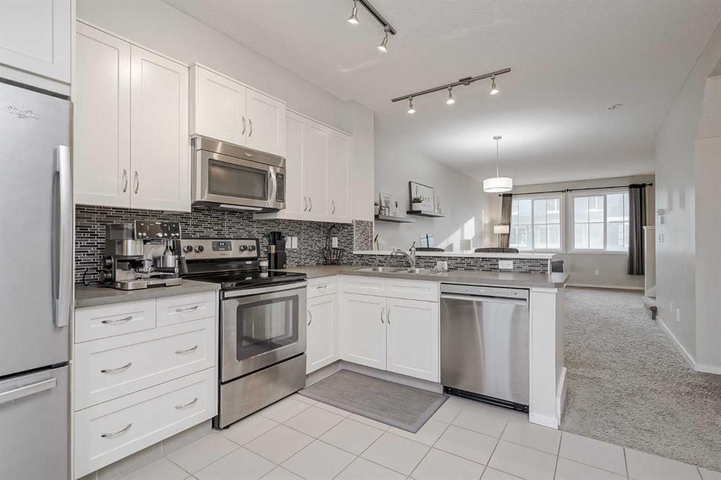 Is this THE BEST PRICED, PET-FRIENDLY, AND SUNNY TOWNHOME WITH ATTACHED GARAGE AND STREET PARKING in all of Kincora? We sure think so! We also encourage you to look in neighbouring Sherwood, Nolan Hill, and Sage Hill, this is the 2 bedroom 2.5 bathroom townhome you have been waiting for! Are you tired of seeing overpriced, outdated, or properties with mistreated interiors hit the market over and over again? We hear you! Welcome to Prospect Rise, conveniently located in one of the most accessible locations in all of NW Calgary, PERFECT for the single professional —or couple— that values quality, location, and proximity to all services and amenities. Forget about having to update and upgrade an old townhome unit for months on end and enjoy —from the moment you move in— this very well kept, well-illuminated open-floor plan layout. Besides a spacious living room and dining room, your well equipped kitchen also comes with double doors that lead not only to your rear deck and separate entry, but also provide immediate access to street parking both for you and your guests.