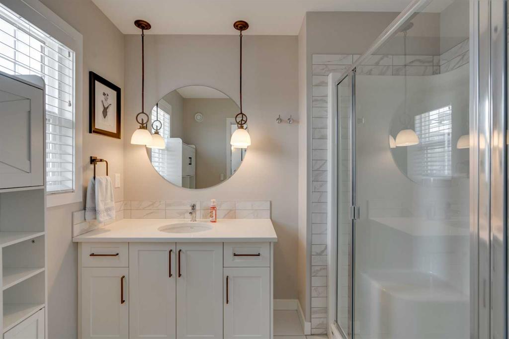 Upstairs, you’ll find three well-appointed bedrooms, including a generous primary retreat complete with a walk-in closet and updated private ensuite featuring a spacious tile shower. The convenience of an upper-level laundry room helps keep daily routines simple and efficient.