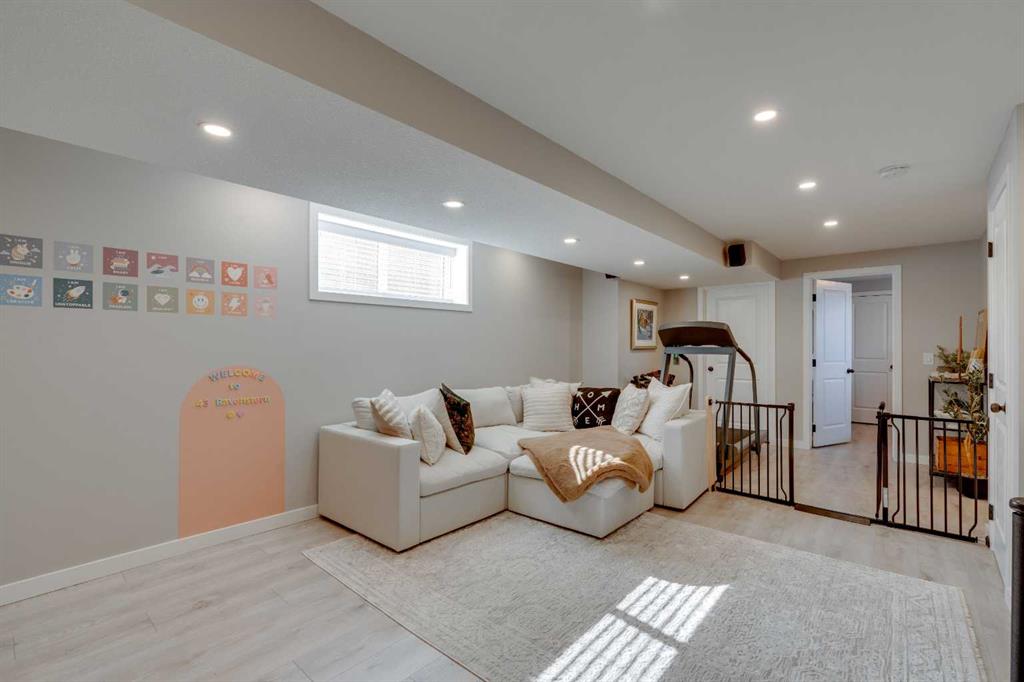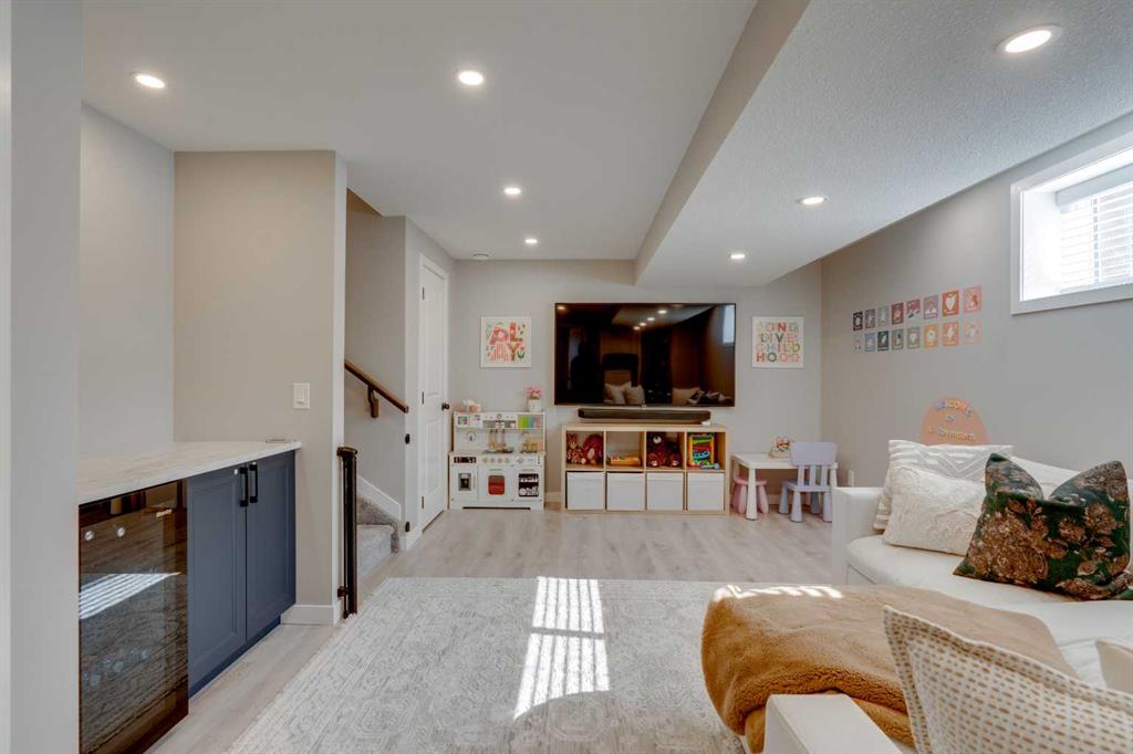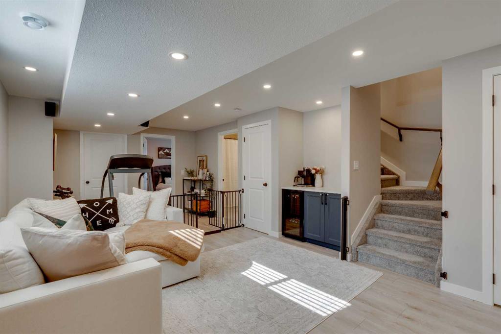 The fully developed basement expands the living space with a large recreation room with dry bar, an additional bedroom, and a full bathroom, ideal for guests, teens, or a workout area.