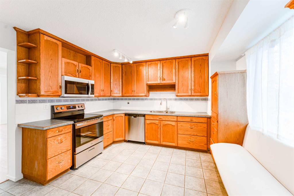 ~OPEN HOUSE ON SATURDAY NOV 22 (1 pm – 3 pm) AND SUNDAY NOV 23 (11 am – 4 pm)~ Location! Location! Location! This home is located in a quiet cul-de-sac within walking distance to LAKE SUNDANCE, a 33-acre man-made lake and a 22-acre park that offers year-round activities. This inviting 3-BED, 1.5-BATH home combines comfort and convenience, all on a generous PIE-SHAPED LOT with a DOUBLE DETACHED GARAGE and a private FULL-WIDTH FRESHLY PAINTED DECK. The first thing you notice when you come home is the chandelier in the foyer and the open living room/dining room area, a fresh coat of paint refreshing the home interior. The kitchen features a BRAND NEW STAINLESS STEEL STOVE, DISHWASHER, and MICROWAVE HOOD FAN, BUILT-IN BENCH SEATING, and CUSTOM CABINETRY, achieving the best of function and aesthetic. The upper floor features BRAND-NEW CARPET and LIGHT FIXTURES, and good-sized bedrooms.