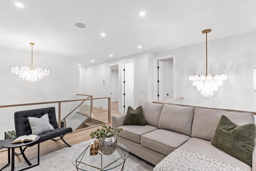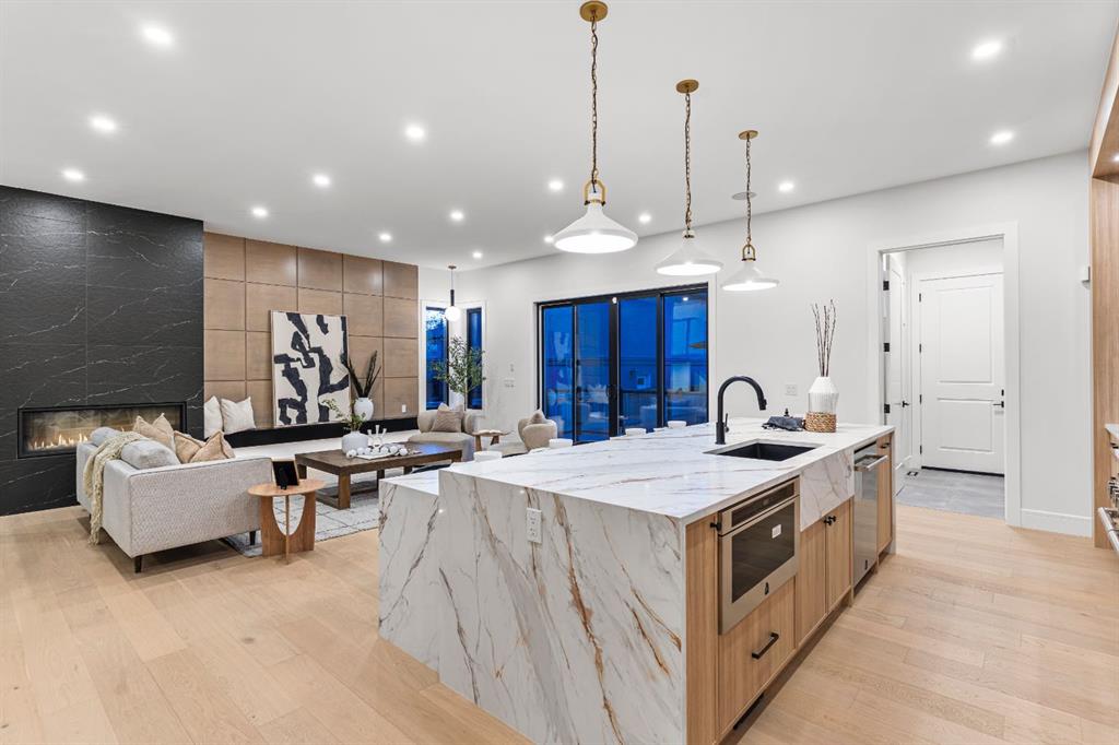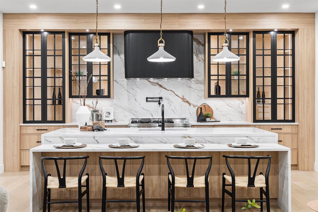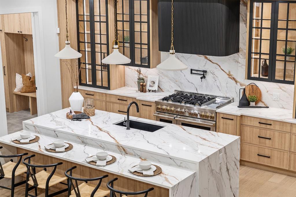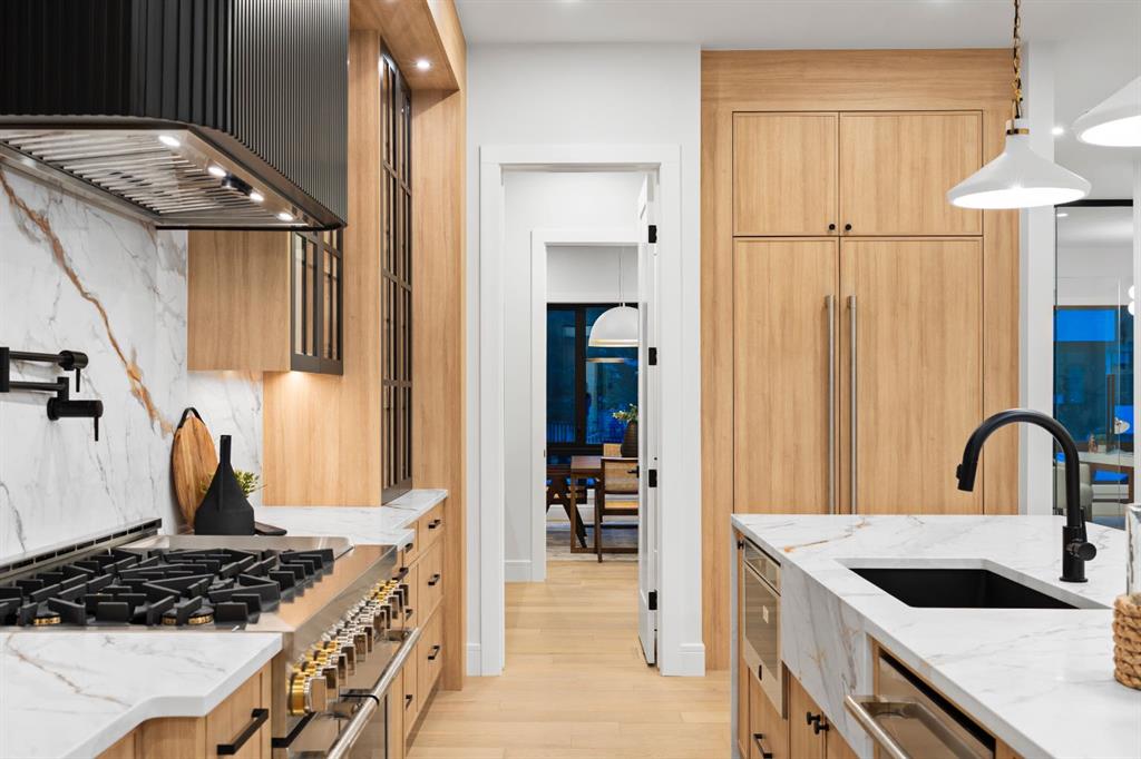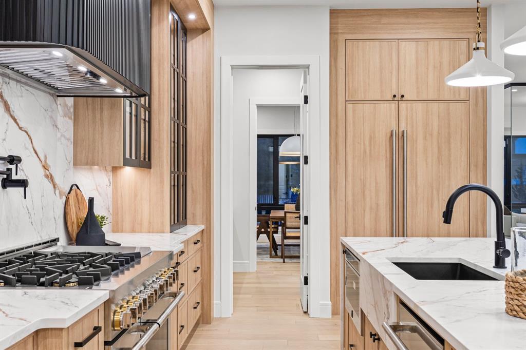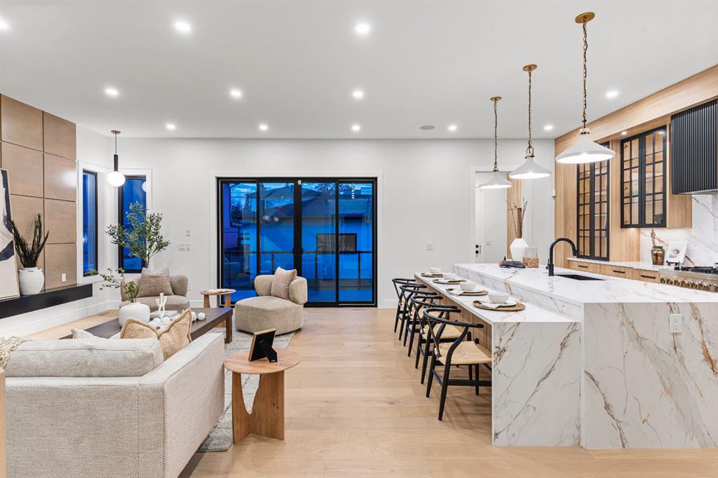 Designed with intention and built with precision, this custom two-storey home in Winston Heights showcases over 3,900 square feet of luxury living where craftsmanship meets modern design. As you enter, the main floor immediately impresses with soaring 10-foot ceilings, open-to-below ceilings, a gorgeous chandelier, wide-plank hardwood, and an abundance of natural light that fills every corner. The front foyer opens into a thoughtfully designed office enclosed by glass walls, with large windows creating a bright and quiet workspace. Just beyond, the formal dining area provides an elegant setting for gatherings, seamlessly connected to a butler’s kitchen and full pantry for added storage and prep space. The chef’s kitchen is the centrepiece of the home, featuring Jenn-Air built-in appliances, a 48” 6-burner Jenn-Air stove, an oversized multi-tier quartz island, quartz backsplash, undermount and inside cabinet lighting, and a striking custom range hood. It opens to a spacious living room anchored by a sleek gas fireplace, custom panelled feature wall with wood grid detailing and oversized windows overlooking the deck and backyard. A stylish powder room with custom San Marcopolo Luxury Oro waterproof paint and a large mudroom with built-ins complete the main level. Heading upstairs from the beautiful maple hardwood open riser stairs, a central family room provides a relaxed lounge area with large windows and built-ins separating the bedrooms for added privacy. The primary suite is a retreat of its own, complete with an oversized walk-in closet featuring custom millwork and access to the laundry room. The ensuite is finished to perfection with a freestanding tub, double vanities, a makeup vanity, a steam shower with body jets, and heated floors. Two additional bedrooms offer generous space, each with built-in closets, and share a full bathroom. The fully developed basement extends the living space with a large open recreation room ideal for entertaining, a custom wet bar, a private gym, a full bathroom, and an additional bedroom perfect for guests. Finishes are carried throughout with the same high-quality craftsmanship, lighting, and millwork found upstairs. Outside, the home sits on a landscaped lot with a spacious rear deck and an oversized three-car detached garage offering ample parking and storage. Additional upgrades include rough-ins for built-in interior and exterior speakers, A/C rough-in, and a security system including exterior cameras. The location is exceptional, steps from Winston Golf Club, surrounded by schools, parks, and playgrounds, and just minutes from downtown, and Deerfoot Trail. This home blends refined design, comfort, and convenience in one of Calgary’s most sought-after inner-city communities. Call today to book your private tour.