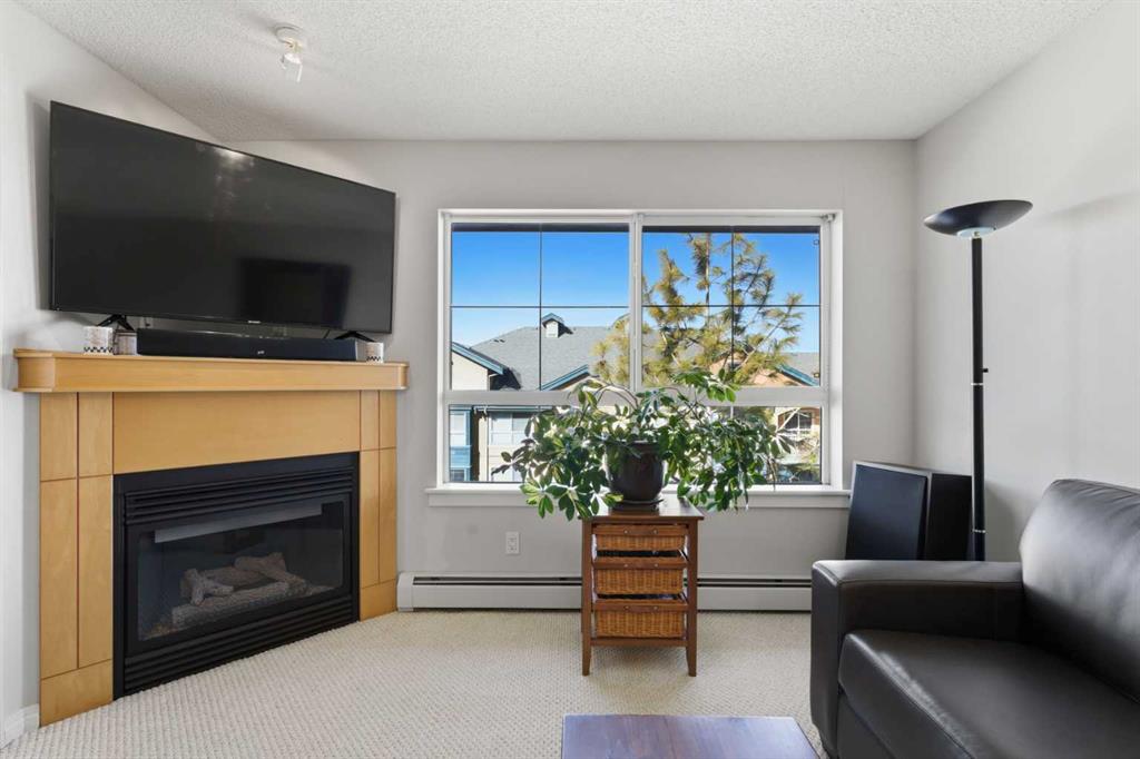 The contemporary kitchen flows seamlessly into a cozy dining nook and a spacious living room, where a charming gas fireplace becomes the perfect focal point—ideal for relaxing evenings or entertaining guests. Step outside to your private west-facing balcony, complete with a gas line, making summer BBQs effortless while enjoying the quiet atmosphere.