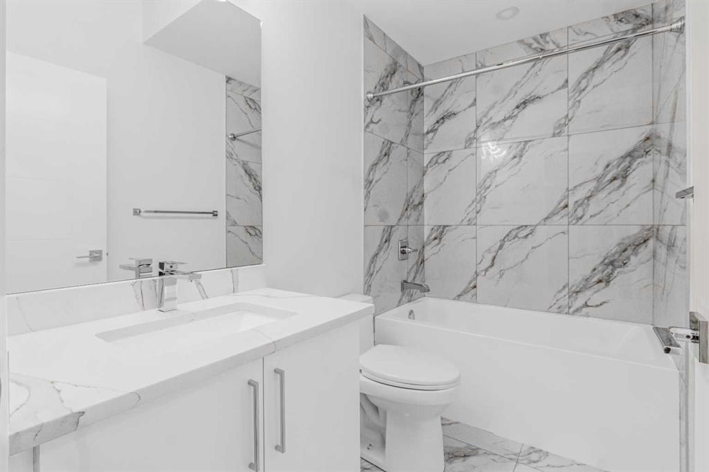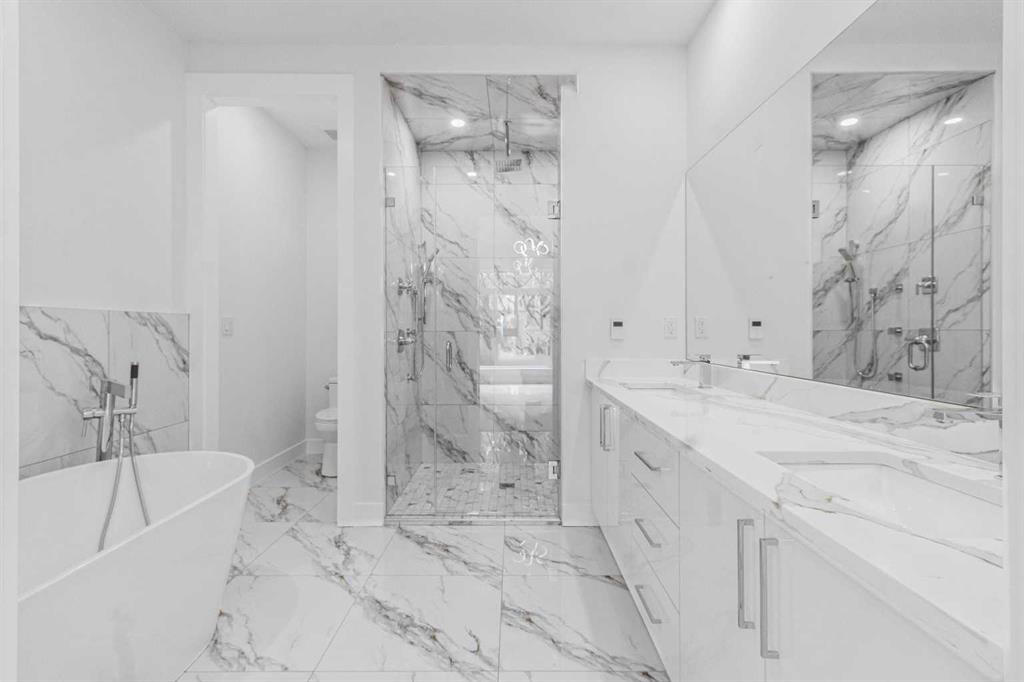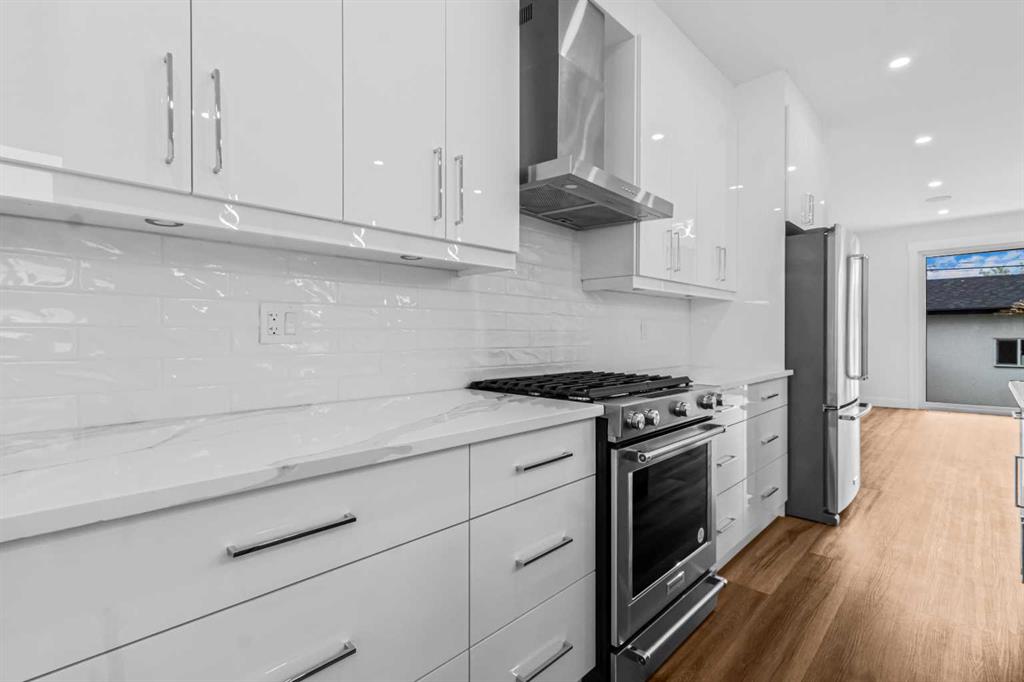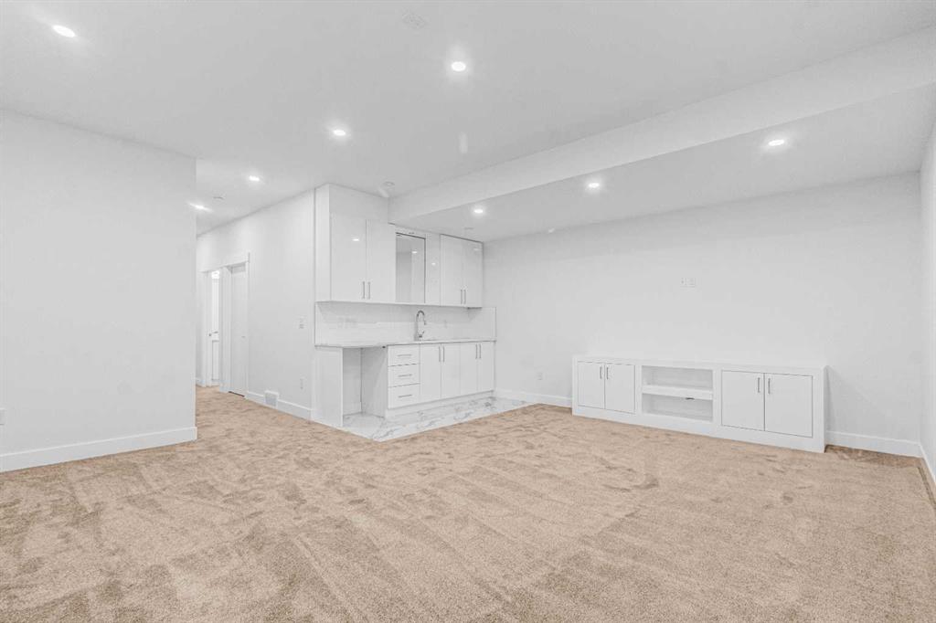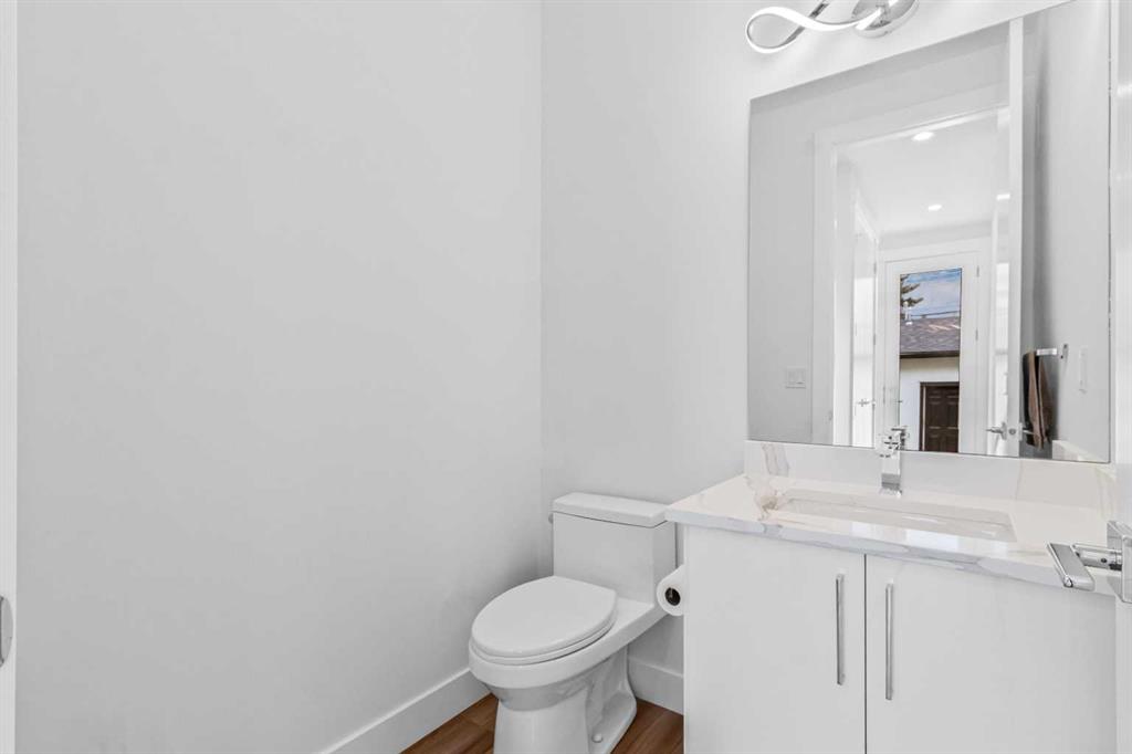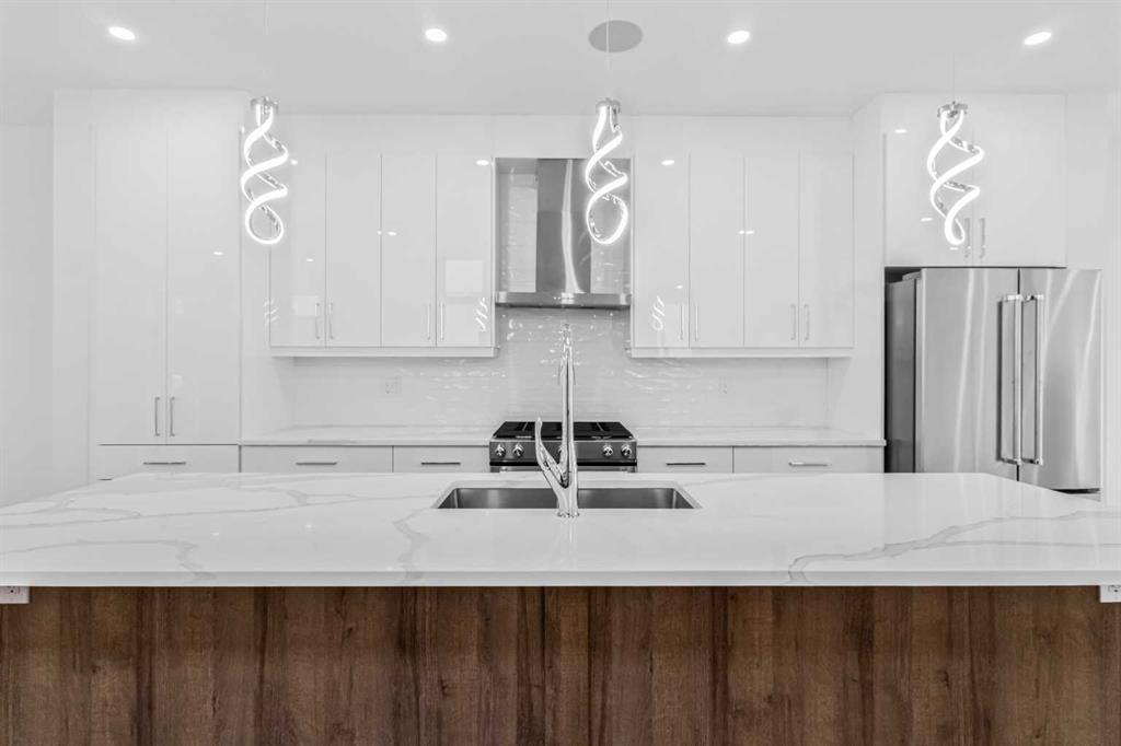 Discover this stunning brand-new semi-detached infill, perfectly blending modern style with classic finishes on a quiet, tree-lined street. With over 2,900 sq ft of living space, this home offers more room than the average semi-detached, making it ideal for a growing family—plus it’s close to top-rated schools & parks. The main floor is flooded with natural light from oversized South facing windows and features an open layout perfect for entertaining. Enjoy the spacious front dining room, a large central kitchen island, and sliding patio doors that connect the rear living room to the backyard. Upstairs, the luxurious primary suite offers vaulted ceilings, beautiful windows, a nearly 100 sq ft walk-in closet, and a spa-like ensuite. Two additional bedrooms, a stylish 4-piece bath, and a convenient laundry room complete the upper level. The finished basement includes a large rec room and a fourth bedroom—ideal as a guest suite, office, or gym. Outside, enjoy a private backyard and double detached garage, all just steps from 4th Street amenities, several parks, schools, and also downtown. Amazing value and quality build!