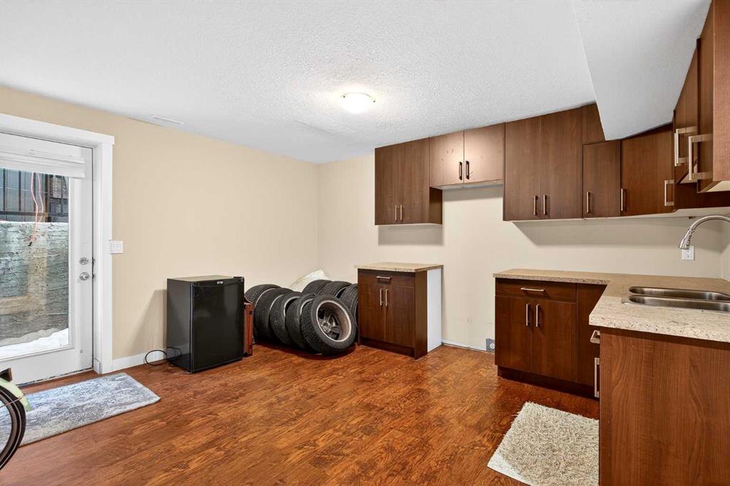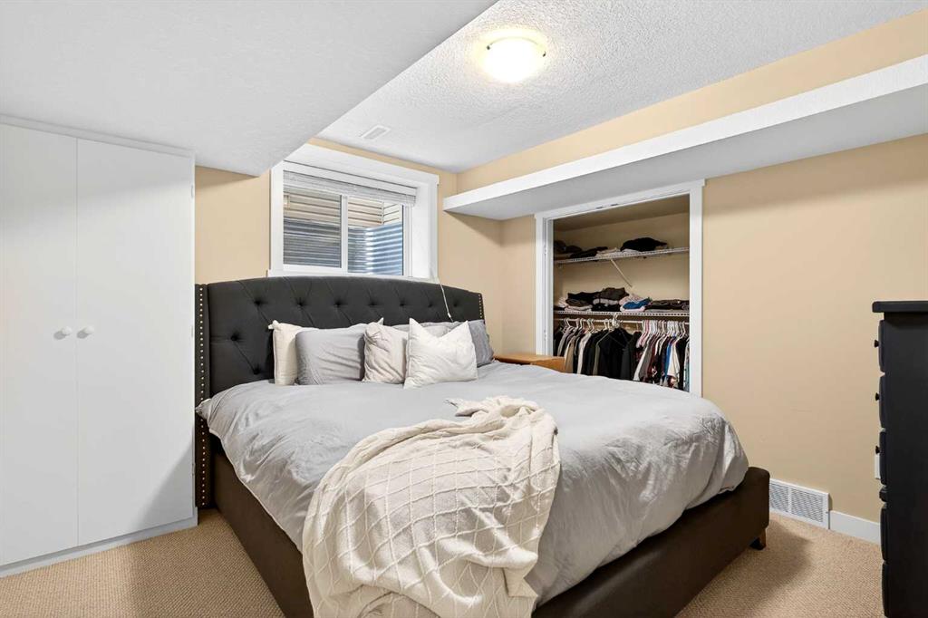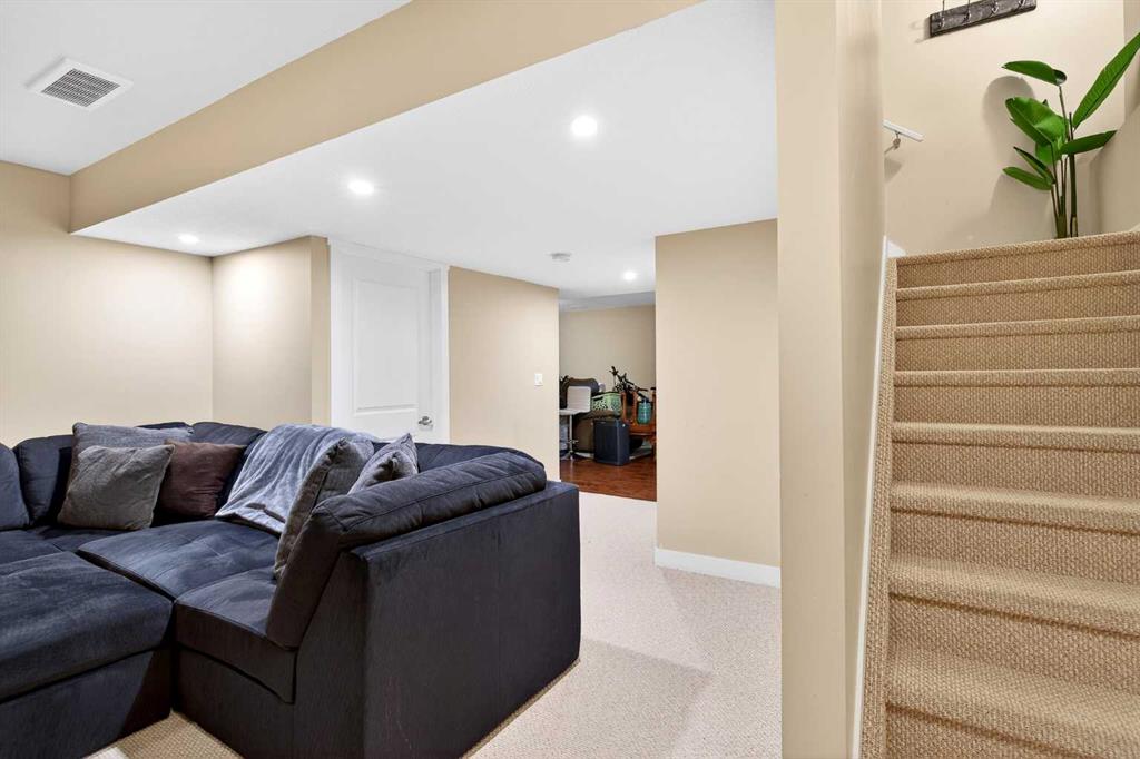 The fully finished walk-up basement includes a separate entrance to an illegal suite, complete with its own kitchen, fourth bedroom, two furnaces, and hookups for a second washer and dryer—ideal for extended family or added flexibility. Outside, permanent Gemstone architectural lighting enhances the exterior, while rear alley access allows for RV parking or the option to add a second garage.