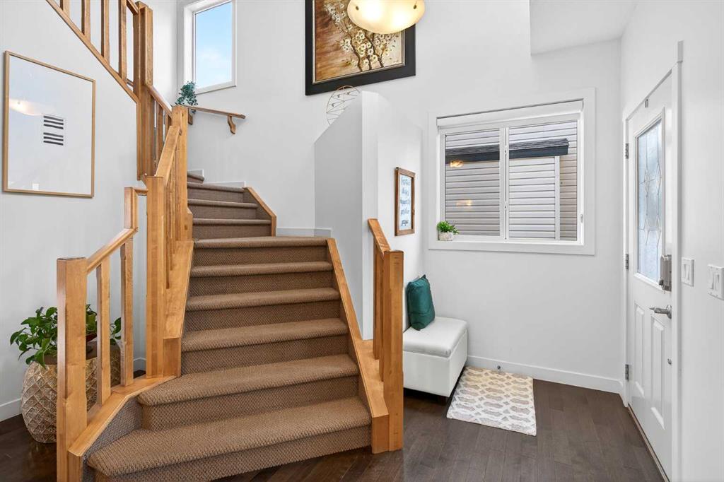 This light-filled home offers 3,687 sq. ft. of total finished living space designed for everyday living and flexibility. The main floor welcomes you with an open-to-below entry that brings in abundant natural light. A versatile front office can also function as a secondary seating area, while the living room features a gas fireplace that anchors the space.