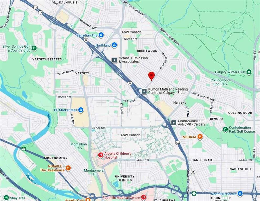 This is bright, open and solid single-story home. The fully developed layout is great with big rooms and separate spaces. Upgrades include vinyl windows, high-efficiency furnace, and roofing. It is set back from the street and still having room in the backyard for an accessory building, RV parking, or private family use. Brentwood is an established community and sought after for quiet living, central location, and green spaces. This home is a few blocks to a Grocery store, C-Train station, and commercial centre. Walking distance to University of Calgary. Just a little further are Foothills and Children’s Hospitals, Northland and Market malls. For enjoyment, there is easy access to trails to Nose Hill Park and the Bow River Valley, or to downtown.