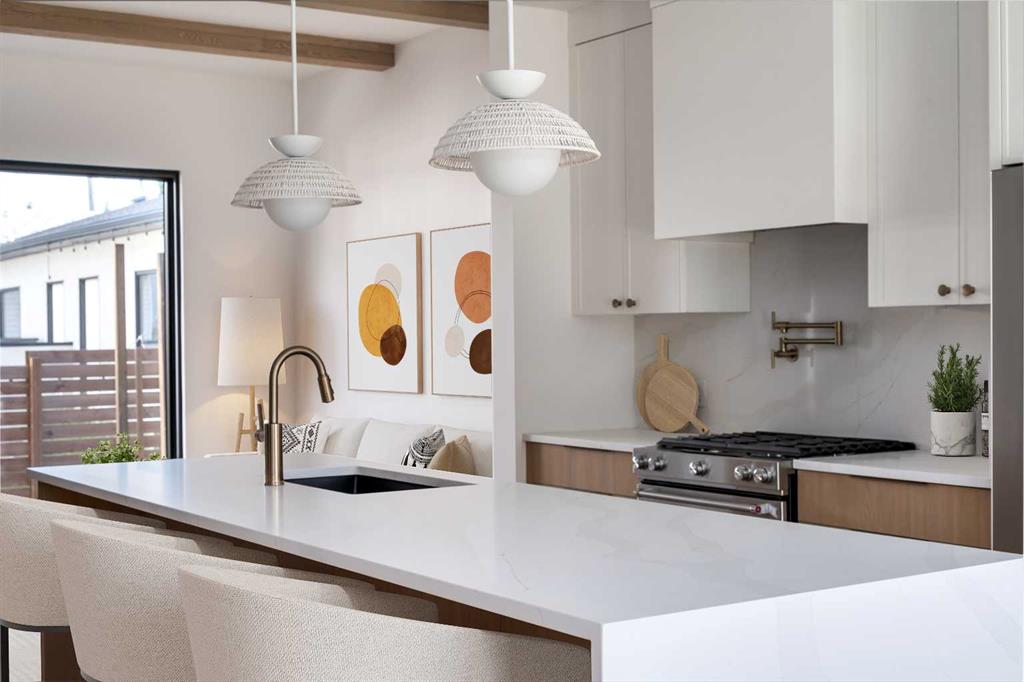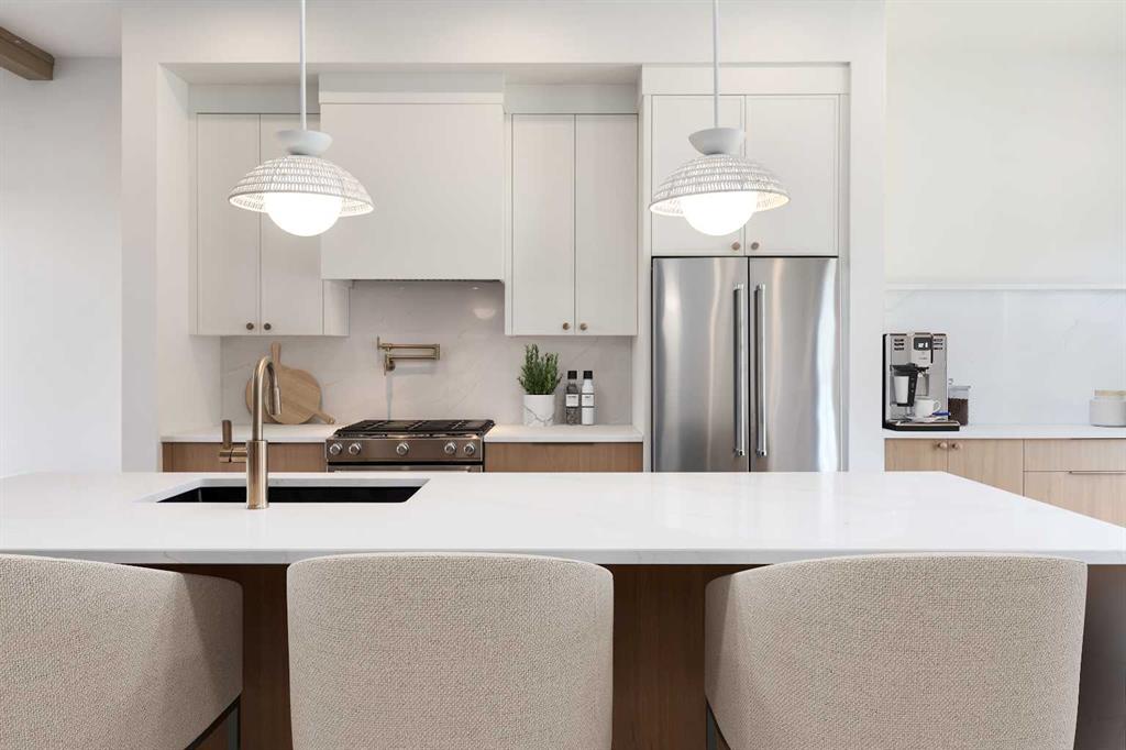 Open House Saturday, Nov. 8 | 2–4 PM. Introducing ‘The Jones’ by A Home Making Company, a boutique builder known for design-driven, meticulously crafted homes in Calgary’s inner-city communities. Every detail reflects a focus on quality, comfort, and timeless design a combination rarely found in today’s market. The chef-inspired kitchen features premium KitchenAid stainless steel appliances including a gas range, hood fan, dishwasher, and space-saving drawer microwave. Quartz countertops, a bookmatched backsplash, pot filler, and built-in garbage and recycling drawers combine luxury and function. The main floor offers 10-foot ceilings, exposed beams, and a gas fireplace with AHMC’s signature custom concrete surround. Built-in shelving and a buffet with matching quartz add both storage and style. The front entrance includes a mirror and custom closet organizer, while a vaulted, chic powder room adds architectural detail. Upstairs, the primary suite features vaulted 13-foot ceilings, exposed beams, and oversized windows that fill the space with natural light. A custom walk-in closet with full-length mirror and ample custom storage. Step inside your breathtaking ensuite, heated floors, double vanity, and walk-in shower with floating bench. The second bedroom includes a custom closet organizer and access to a full bathroom, ideal for family or guests. A skylight brightens the landing, complementing the high ceilings throughout. The lower level is designed for entertaining, with a media room, full wet bar, built-in TV wall, under-cabinet lighting, custom shelving, and beverage fridge. A third bedroom and full bathroom offer privacy and comfort, highlighted by sunshine windows and exceptional finish quality. Materials include 7.5-inch oak engineered hardwood, soft-close custom cabinetry, 8-foot doors, and European tilt-and-turn windows with phantom screens. Mechanical features include air conditioning, rough-in in-floor heating, 50-gallon hot water tank, HRV system, sump pump, and programmable Eco B Smart thermostats. The exterior offers a south-facing, low-maintenance yard with BBQ gas line, 7-foot privacy fence and gate and a single detached garage with epoxy floor. The brick and stucco façade with under-mount lighting reflects AHMC’s precision craftsmanship and attention to detail. Modern upgrades include in-ceiling speakers, Telus Fibre Optik, CAT6 wiring, and an epoxy-finished mechanical room with water sensor. Located near top public and Catholic schools, parks, shopping, and major routes—17th Avenue, Richmond Road, Sarcee Trail, Bow Trail, and Crowchild Trail—this home offers refined inner-city living without compromise. A Home Making Company doesn’t just build houses, they build homes. Experience the difference at The Jones.