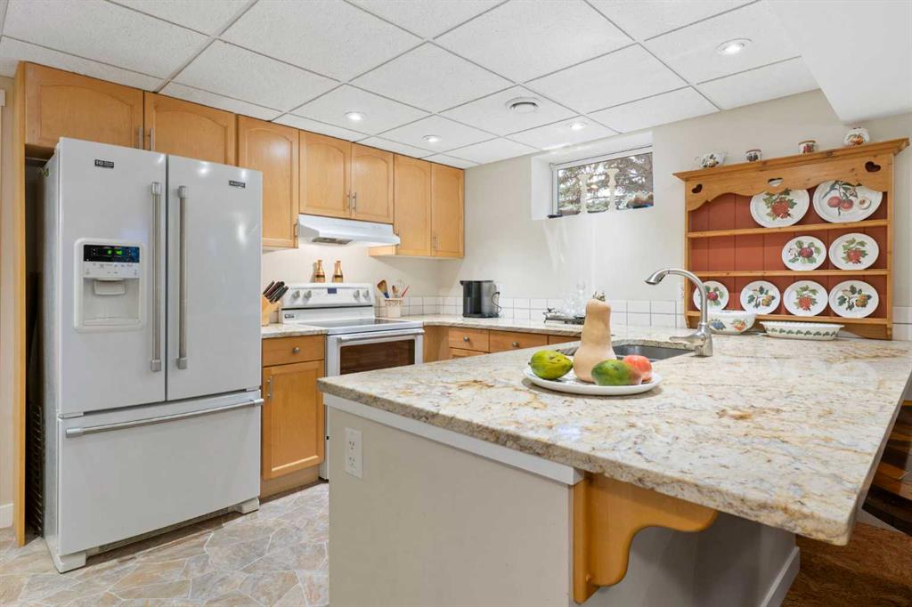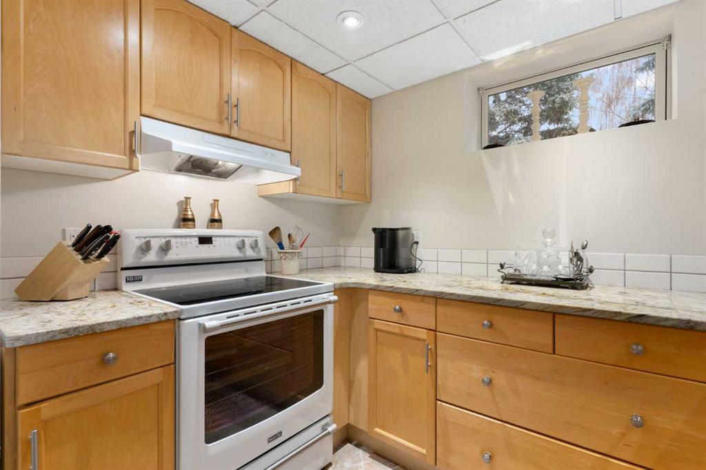 This home ALSO includes a fully self-contained lower suite (illegal) hosting a king-sized bedroom, second bedroom/office, 3-piece bathroom, convenient in-suite stacked washer and dryer, and beautiful maple cabinetry paired with sleek granite countertops—ideal for guests or rental income.