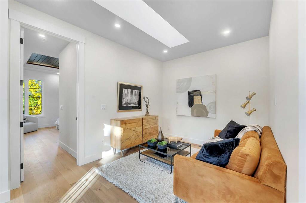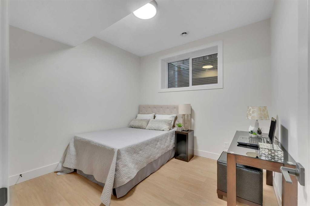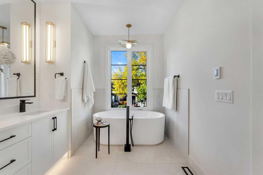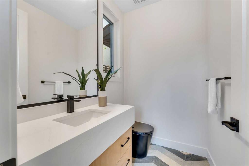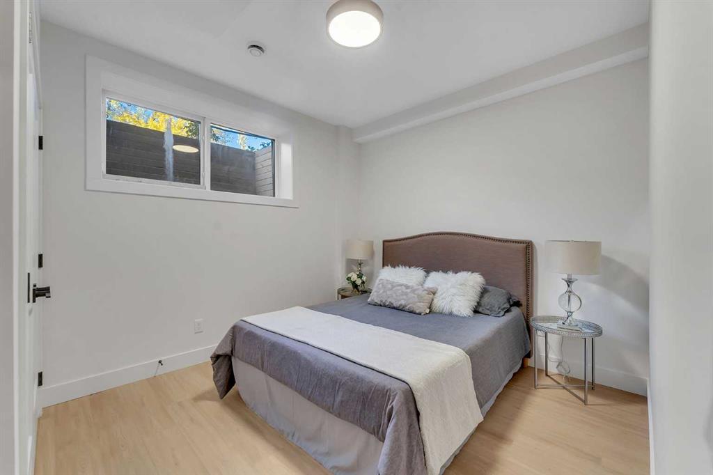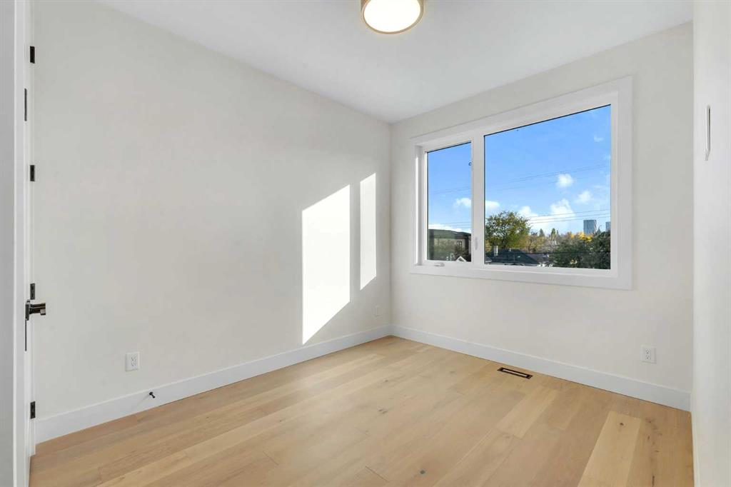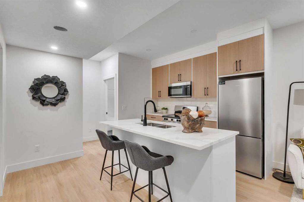 Welcome to the heart of Mount Pleasant, one of Calgary’s most sought-after inner city neighbourhoods. This newly built semi detached home combines modern design with practical family living, offering over 2,800 sq ft of beautifully finished space including a legal suite. Thoughtfully designed for flexibility, it’s ideal for multi generational living or rental income without compromise on comfort or style. The open concept main level features large windows that fill the home with natural light. The kitchen showcases KitchenAid appliances, sleek and stylish custom cabinetry, quartz countertops, and a stunning full slab backsplash that creates a clean, seamless look. A large island anchors the space, perfect for casual meals or conversation. The adjoining dining and living areas flow naturally toward the deck, creating an inviting space for both family time and entertaining. A fully fenced, landscaped yard with a composite deck offers a private, low maintenance outdoor retreat. Upstairs, the primary suite is a true escape, featuring a large walk in closet and a spa inspired ensuite with Italian tile, a steam shower, freestanding tub, and dual vanities. Italian tile continues through all bathrooms, adding a consistent, upscale feel. Two additional bedrooms, a full bath, and a laundry room complete the level, designed with both privacy and function in mind. The legal two bedroom basement suite is self contained with its own entrance, full kitchen, laundry, and bath, ideal for extended family or generating additional income. The design and sound separation ensure comfort for both households. Additional features include smart toilets, engineered hardwood on the main and upper floors, durable LVP in the basement, and a double detached garage offering secure parking and extra storage. The exterior blends red brick, and modern accents for timeless curb appeal. Mount Pleasant continues to be one of Calgary’s most desirable communities, known for its mature tree lined streets, walkability, and welcoming feel. Residents enjoy easy access to Confederation Park, the community pool and sports facilities, as well as cafes and boutiques along 4th Street NW. Close proximity to SAIT, Kensington, and downtown makes daily life convenient and connected. A home that delivers quality construction, flexible living, and a location that will always be in demand. Move in ready. Photos are from the other side of the duplex and are provided for reference only. Finishes, layout, and measurements may vary slightly.