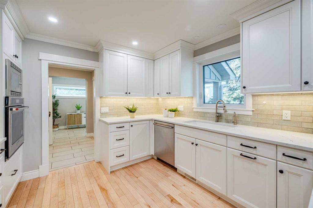 Set on a rare oversized corner lot, this property offers an exceptional outdoor lifestyle that’s nearly impossible to find in the sought-after central neighborhood of Garrison Woods. With sun-filled exposures from morning through evening, the beautifully landscaped front and back yards create multiple inviting spaces to relax, entertain, and unwind. Extensively updated and move-in ready, this home offers over 2,000 sq. ft. of developed living space, seamlessly blending timeless charm with modern upgrades. The bright and inviting main floor welcomes you through a newly added mudroom, completed in 2024, with heated tile floors, a large coat closet, and ample space for shoes and outerwear. This practical entry space is a rare find in a neighbourhood where entryways are often limited. From there, the fully updated kitchen showcases quartz countertops, quality cabinetry, and upgraded appliances, flowing seamlessly into spacious living and dining areas finished with new flooring throughout. Upstairs, you’ll find generous bedrooms, including a beautifully updated primary retreat with a spa-inspired ensuite featuring in-floor heating and a jetted air tub, along with the convenience of upper floor laundry. The professionally developed basement adds valuable living space with an additional bedroom and full bathroom—perfect for guests or a growing family. Step outside to enjoy the exceptional outdoor living areas, including new composite decking, and an premium aluminum pergola with adjustable louvers, heaters, and retractable screens for extended seasonal use. The fully landscaped yard offers mature trees, lighting, and exceptional privacy, along with a newly built shed finished to match the home’s exterior. Completing the property is an insulated double garage, adding everyday convenience and functionality.