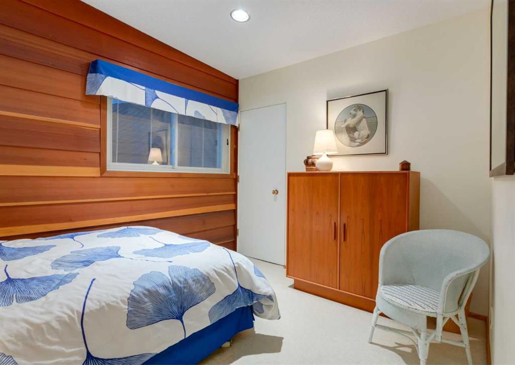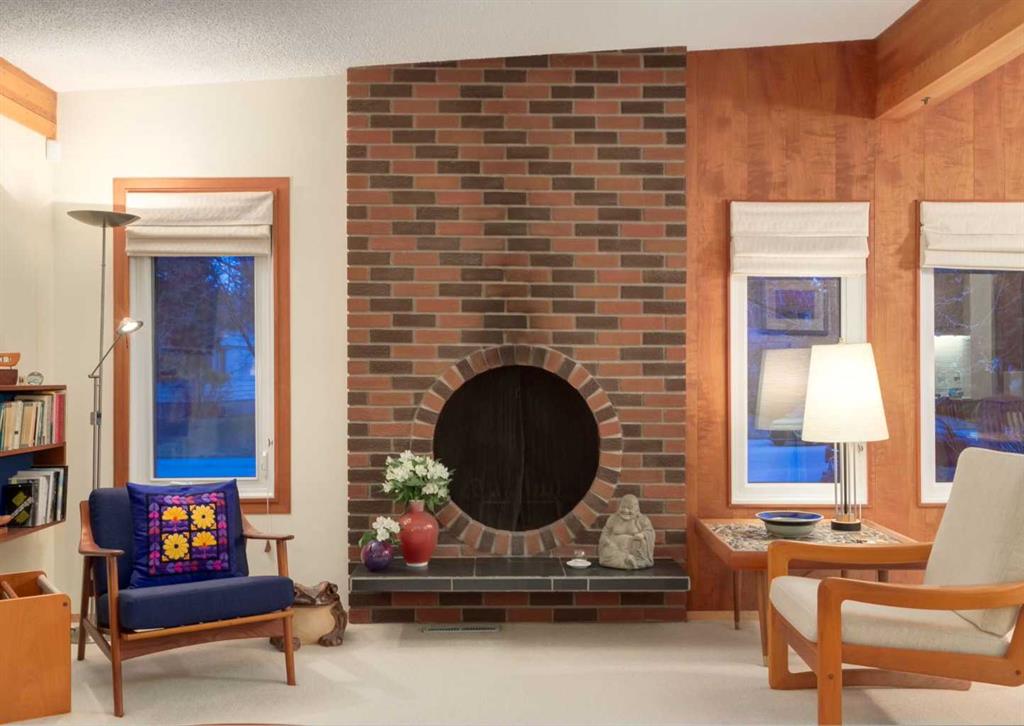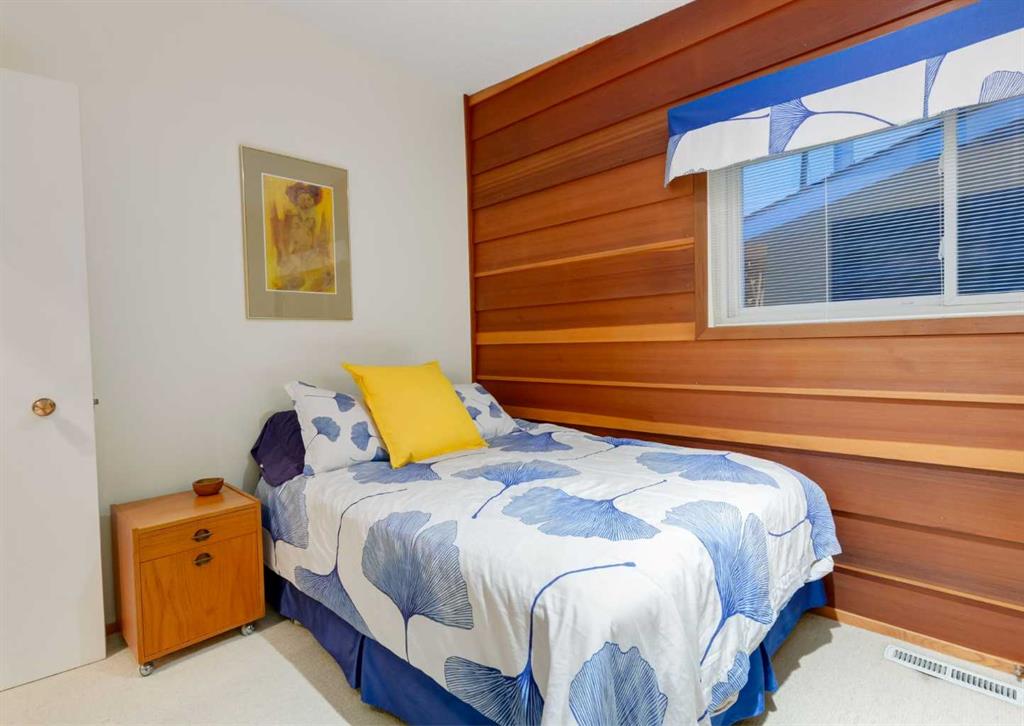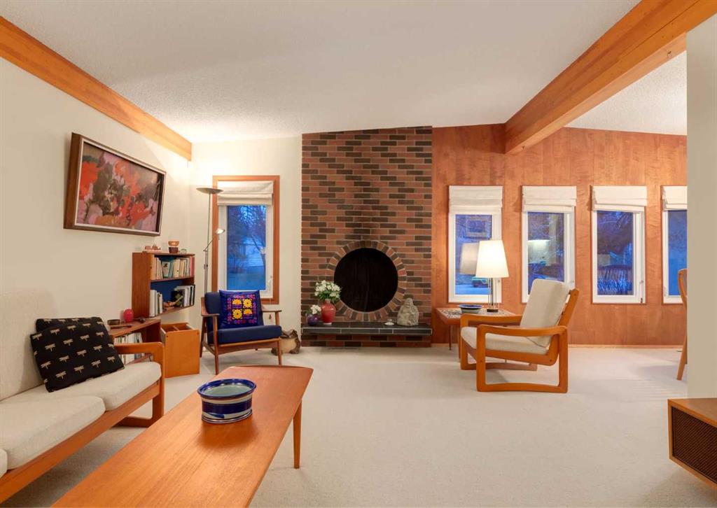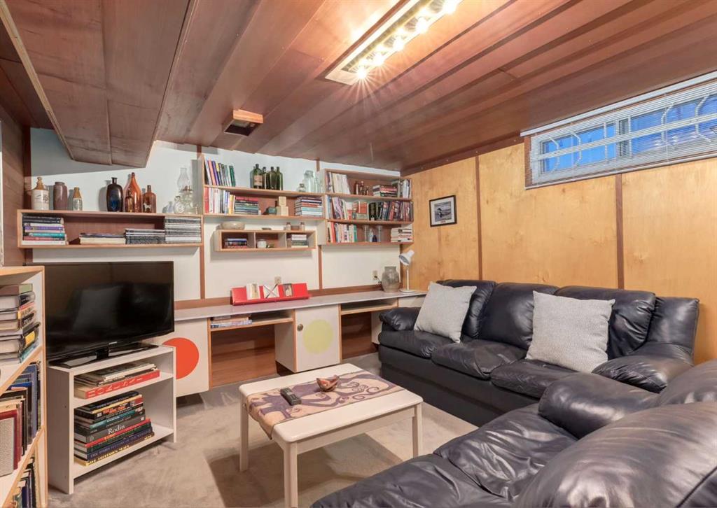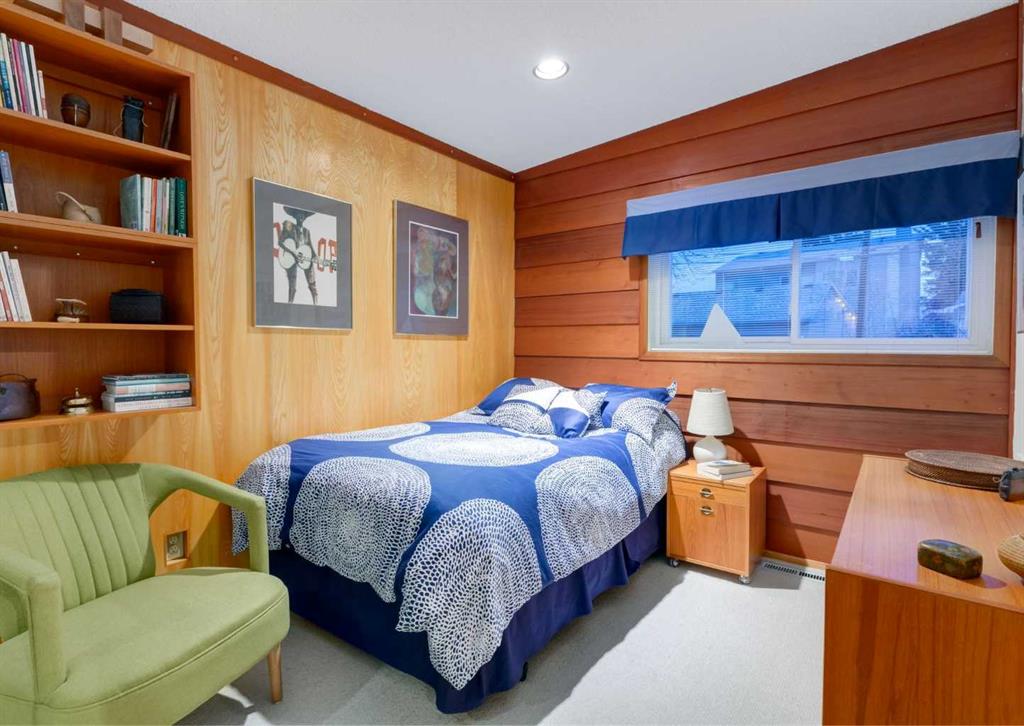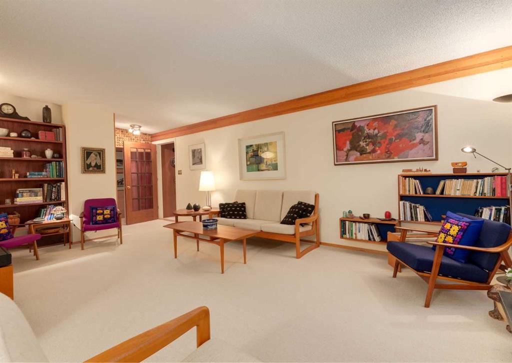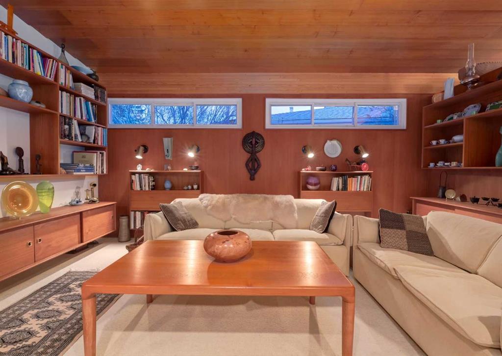 ***Open house Saturday April 25, 1-3pm*** This meticulously maintained mid-century home is a true architectural time capsule—lovingly preserved and thoughtfully crafted, with custom woodwork carried throughout nearly every space that cannot be replicated. From the moment you step into the vaulted, tiled mudroom, you’re welcomed by clean lines, natural materials, and an abundance of light streaming through the windows. The main floor den is a standout, featuring rich wood paneling and custom built-in shelving—an ideal reading or work-from-home space. A single French door leads into the living room, where a timeless wood-burning brick fireplace and windows create a warm, inviting atmosphere. The dining area seamlessly connects to the kitchen, where original cabinetry has been impeccably maintained and a skylight fills the space with natural light. This level offers three well-sized bedrooms and a full bathroom, continuing the home’s cohesive design. The lower level, with its own separate side entrance, expands the living space with a family room, a vintage-inspired 4-piece bathroom, an additional flex room, and a dedicated art studio—perfect for creative pursuits or a private workspace. Situated on a pie-shaped lot, the backyard features a large custom composite deck with plenty of room to relax or entertain. The oversized garage is a true highlight, complete with a beautifully crafted custom workbench and extensive built-in cabinetry. The studio and workshop spaces are truly special that reflect the creativity and care poured into this home over the years. This is a home for a discerning buyer—someone who recognizes the significance of mid-century design, values craftsmanship, and appreciates a property that has been carefully maintained and preserved. A truly special offering in one of NW Calgary’s most sought-after communities. Steps from Varsity Acres School and close proximity to F.E. Osborne, St. Vincent de Paul, and Marion Carson Schools. Minutes from the University of Calgary, Market Mall, Foothills/Children’s Hospital, University District, and the Bow River pathways. Opportunities like this are incredibly rare. Please click on media for the video and schedule your private viewing today.