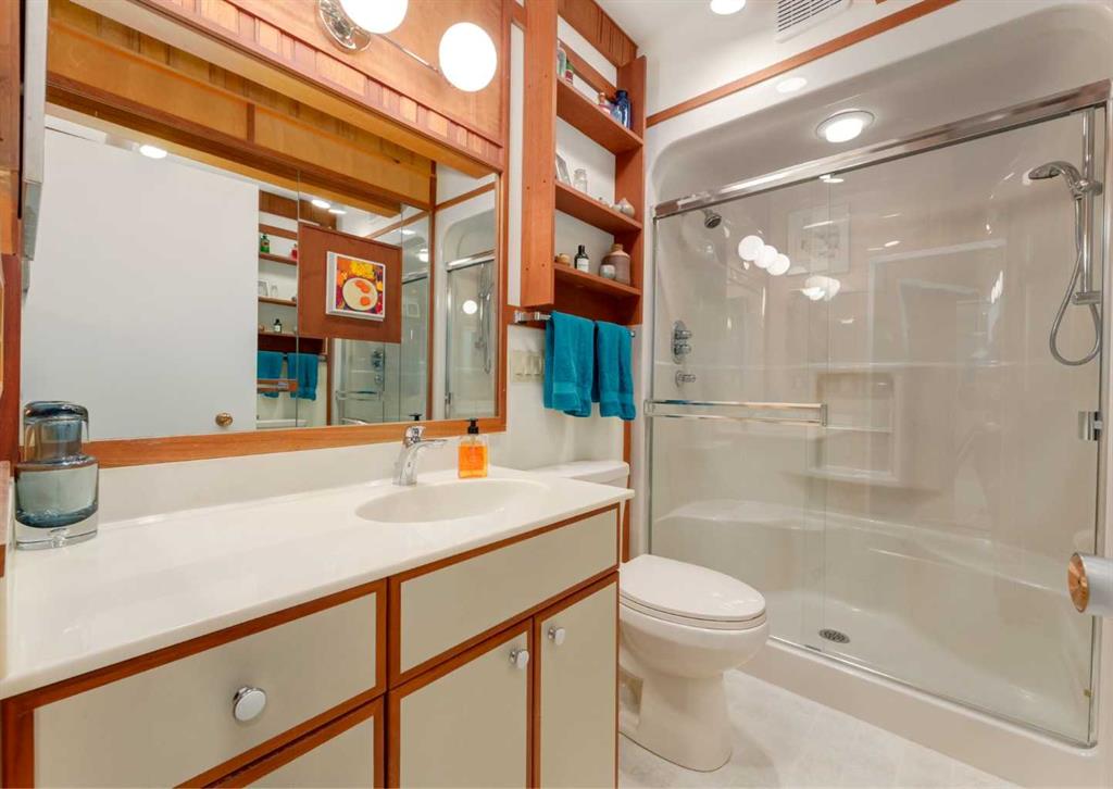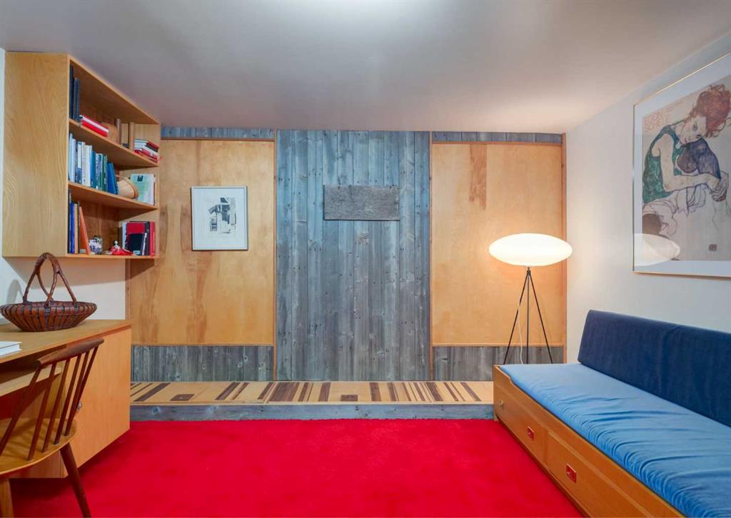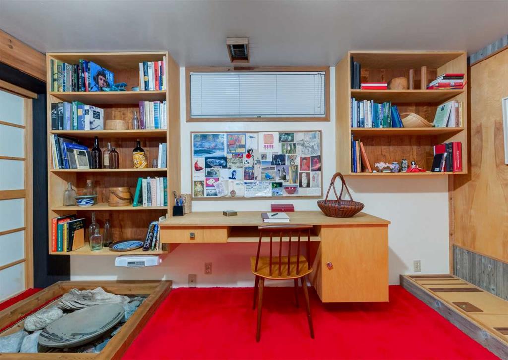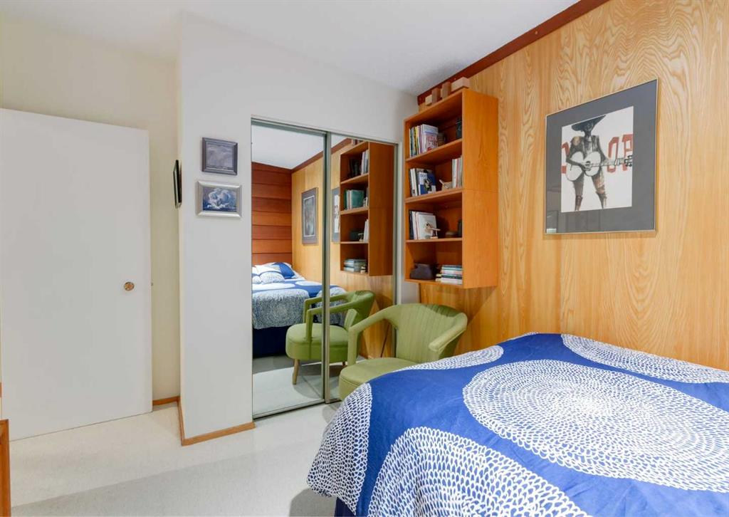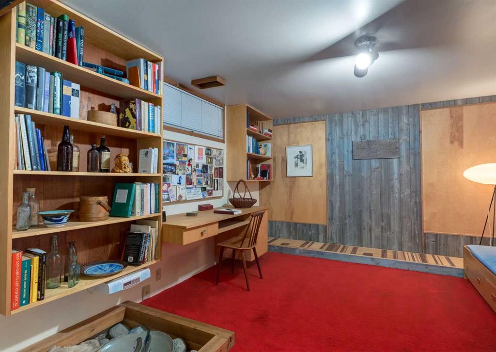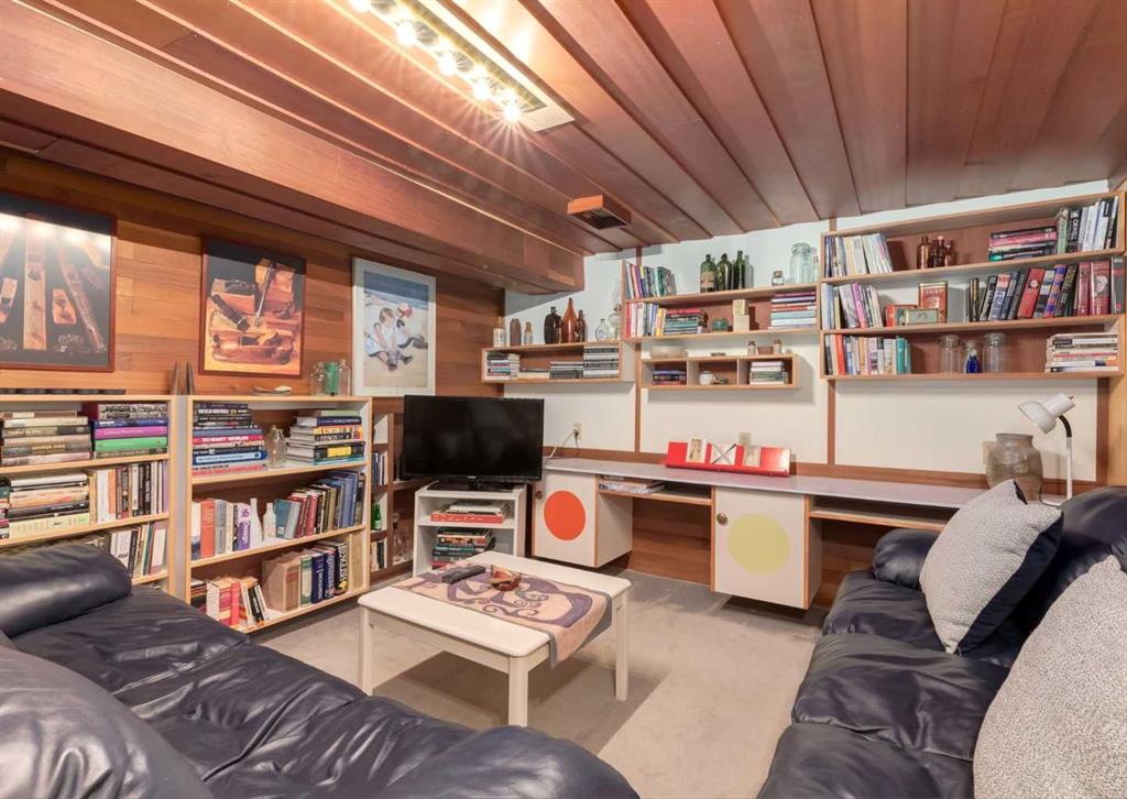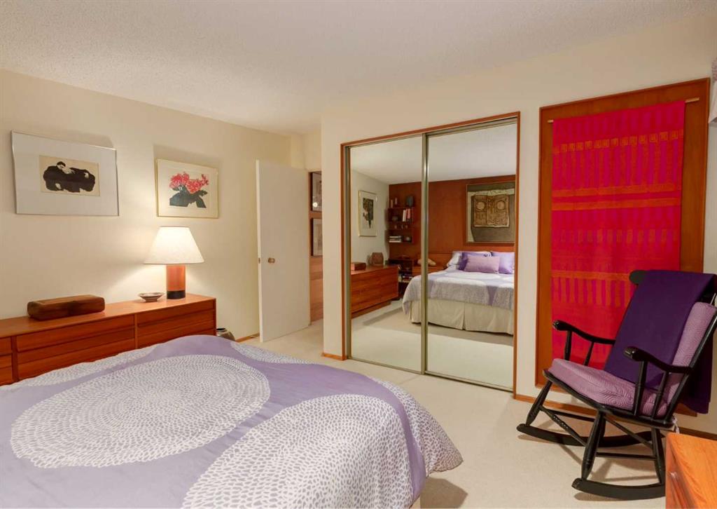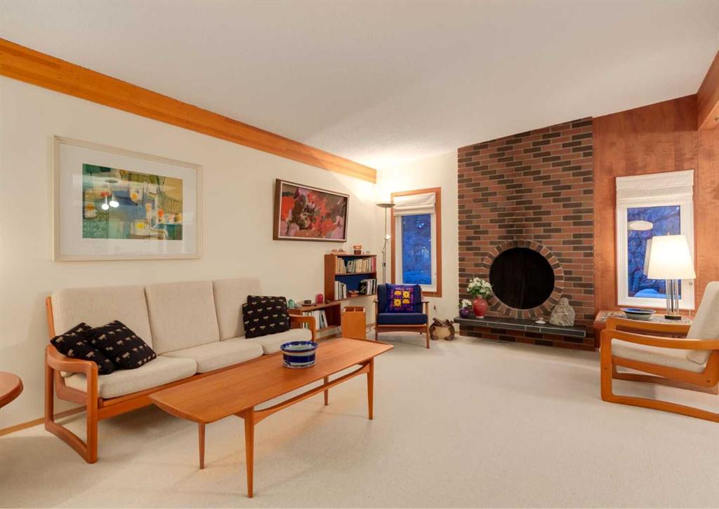 ***Open house Saturday April 25, 1-3pm*** This meticulously maintained mid-century home is a true architectural time capsule—lovingly preserved and thoughtfully crafted, with custom woodwork carried throughout nearly every space that cannot be replicated. From the moment you step into the vaulted, tiled mudroom, you’re welcomed by clean lines, natural materials, and an abundance of light streaming through the windows. The main floor den is a standout, featuring rich wood paneling and custom built-in shelving—an ideal reading or work-from-home space. A single French door leads into the living room, where a timeless wood-burning brick fireplace and windows create a warm, inviting atmosphere. The dining area seamlessly connects to the kitchen, where original cabinetry has been impeccably maintained and a skylight fills the space with natural light. This level offers three well-sized bedrooms and a full bathroom, continuing the home’s cohesive design. The lower level, with its own separate side entrance, expands the living space with a family room, a vintage-inspired 4-piece bathroom, an additional flex room, and a dedicated art studio—perfect for creative pursuits or a private workspace. Situated on a pie-shaped lot, the backyard features a large custom composite deck with plenty of room to relax or entertain. The oversized garage is a true highlight, complete with a beautifully crafted custom workbench and extensive built-in cabinetry. The studio and workshop spaces are truly special that reflect the creativity and care poured into this home over the years. This is a home for a discerning buyer—someone who recognizes the significance of mid-century design, values craftsmanship, and appreciates a property that has been carefully maintained and preserved. A truly special offering in one of NW Calgary’s most sought-after communities. Steps from Varsity Acres School and close proximity to F.E. Osborne, St. Vincent de Paul, and Marion Carson Schools. Minutes from the University of Calgary, Market Mall, Foothills/Children’s Hospital, University District, and the Bow River pathways. Opportunities like this are incredibly rare. Please click on media for the video and schedule your private viewing today.