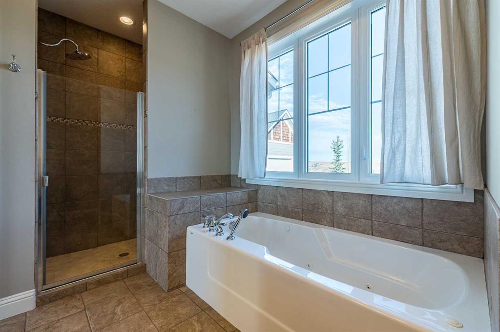 The main-floor primary suite is a peaceful retreat with expansive windows capturing the views, a generous walk-in closet, and a luxurious 5-piece spa-inspired ensuite complete with a jetted tub and a beautifully designed shower.
