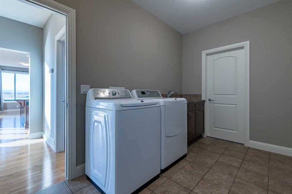 The gourmet kitchen is perfect for entertaining, featuring a massive island, extensive cabinetry, and a convenient pantry with pull-out drawers. The main-floor laundry room is oversized and includes a large walk-in closet—ideal for additional pantry or storage space.