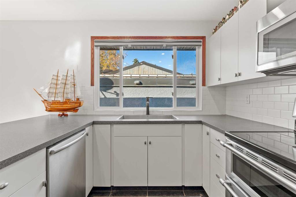 The illegally suited basement is immaculate with a perfect design. With bright windows, a spacious living/dining area, updated kitchen with a custom breakfast bar, another primary sized bedroom with double closets, and a den (just needs a window to be a bedroom), there’s room for everyone. The basement has a separate laundry room with cabinets.