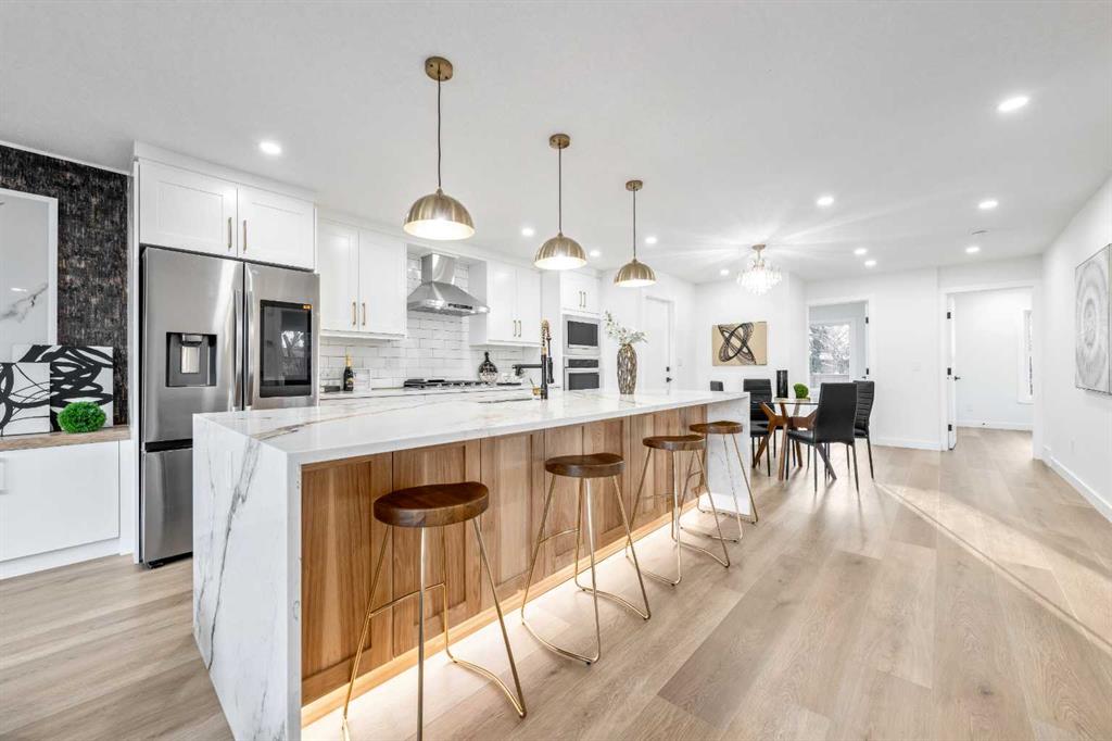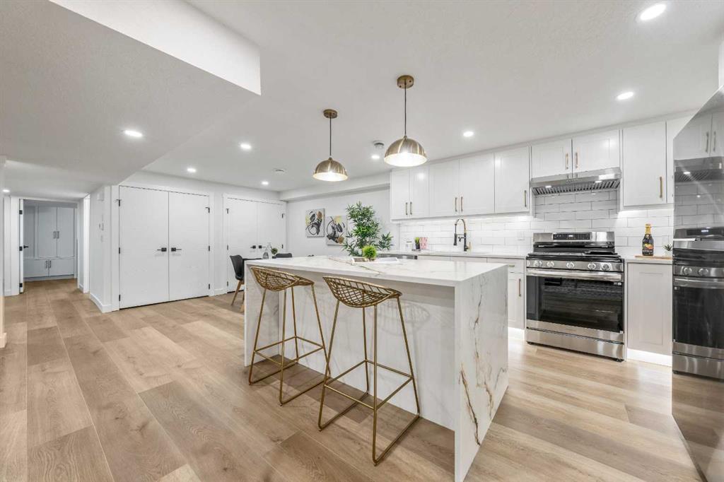 FULLY RENOVATED with all City Permits, Welcome to this stunning Front garage bungalow home that has been beautifully renovated in an oversized lot on a nice quiet street in the desirable community of Willowpark. This stunning bungalow has undergone a top-to-bottom renovation to the highest standards, ensuring that every detail has been carefully crafted to its perfection. You are welcomed by a huge open concept living area with 5 BEDROOM/ 3 Bathroom/2 Kitchens in the house. As you enter the home, you will immediately notice the durable vinyl plank flooring that flows throughout the main living space, creating an inviting and modern ambiance. The open concept living area boosts a spacious living room with large windows that allows natural light to flood in and brighten up the space with a cozy modern fireplace. The kitchen is a chef’s dream, complete with stainless steel appliances, and a large quartz countertop with a great size island is perfect for entertaining guests. The main level features a primary bedroom with ensuite and 2 more bedrooms, with a full bathroom conveniently located nearby. The legal basement suite has two more bedrooms, full bathroom, separate laundry and a kitchen with separate entrance, making it an ideal space for guests or Airbnb to generate extra income. Come and experience the beauty of this home for yourself. CLOSE TO TRANSIT, SHOPPING CENTER, PARK and SCHOOLS. Renovation completed within city permit compliance. Book your showing Today!