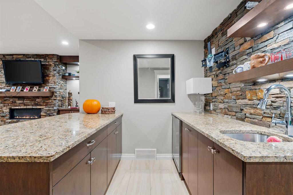 Downstairs, the fully developed lower level offers a spacious recreation room with gas fireplace, wet bar with wine fridge and built-in cabinetry—the ideal setup for movie nights or guests. A fifth bedroom, 3-piece bathroom, and large utility/storage room complete the basement.