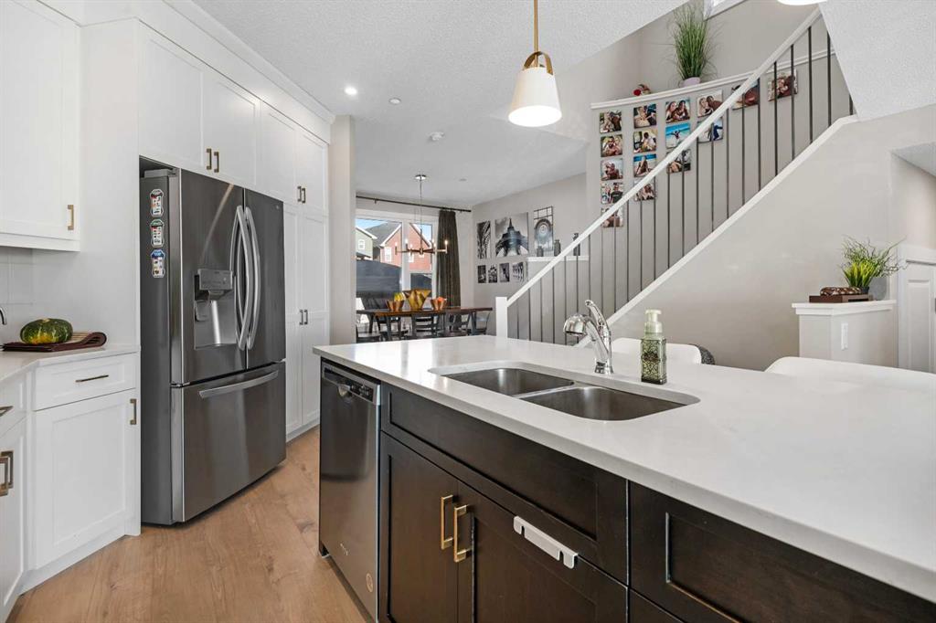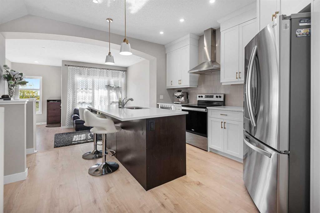 EXTREMELY UNIQUE BROOKFIELD BUILD – BELVEDERE MODEL – TONS OF UPGRADES. Welcome to this exceptional, extremely unique Brookfield built, sought after belvedere model home located right across from a proposed new school, many major bus routes and in the heart of one of Calgary’s newest and most updated communities—Livingston. This beautiful two-storey home is packed with charm and premium upgrades, featuring a thoughtfully designed main floor layout, that showcases a sunken living room and an elegant curved staircase tucked toward the back of the home with dual skylights above, soaring ceilings, a builder upgraded flush-mounted sprinkler fire suppression system, a luxurious lighting package, and premium vinyl plank flooring throughout. The spacious living room is soaked in natural sunlight and anchored by a sleek electric fireplace, creating a cozy yet modern ambiance. Just a few steps up, the elevated kitchen and dining area offers a sense of separation and sophistication, featuring all stainless steel appliances, recessed pot lighting, full-height premium cabinetry, and a large central island perfect for family meals or entertaining guests. From the dining area, step out into your own serene, backyard oasis, complete with covered seating under a charming gazebo—the ideal spot for relaxing on warm evenings or hosting unforgettable family gatherings. Back inside, head upstairs on your featured curved staircase to find your personal retreat in the large primary suite, which offers a spacious five-piece ensuite with a full standing glass-door shower, separate soaking tub, large vanity, and a walk-in closet that ticks all the boxes. Just off the primary suite, enjoy your morning coffee or unwind at the end of the day on your oversized private balcony, soaking in the peaceful views of your quiet, family-friendly neighbourhood in total comfort and privacy. Across the upper level, you’ll find two more generously sized bedrooms that share another full four-piece bathroom, making this layout ideal for a growing family, guest space, or a convenient home office or hobby room. Downstairs, the basement offers a blank canvas with bathroom rough-in and two large windows, giving you the freedom to create your dream space—whether it’s a home gym, media room, kids’ play area, or future development. With this many premium features, smart design choices, and a layout full of unique charm and character, this home is everything you’ve been waiting for and more—book your private viewing today and see what makes it so special!