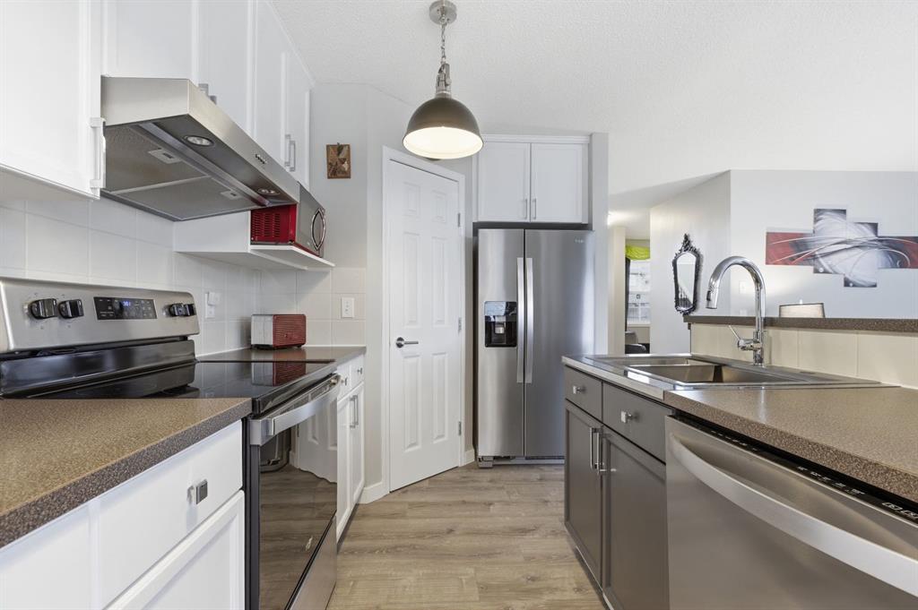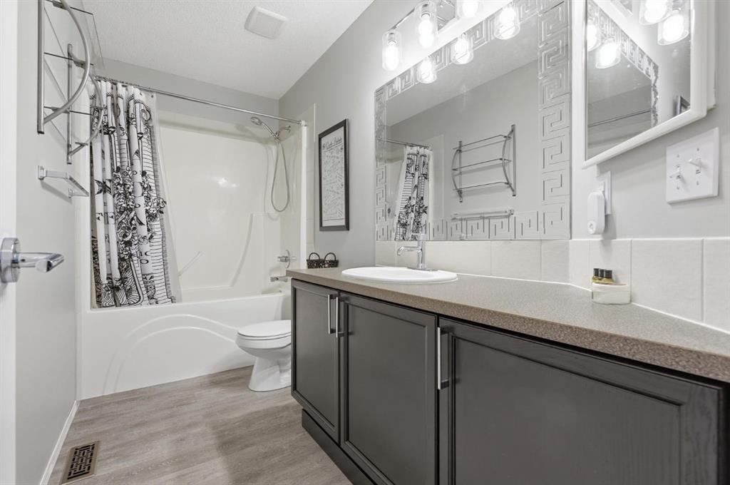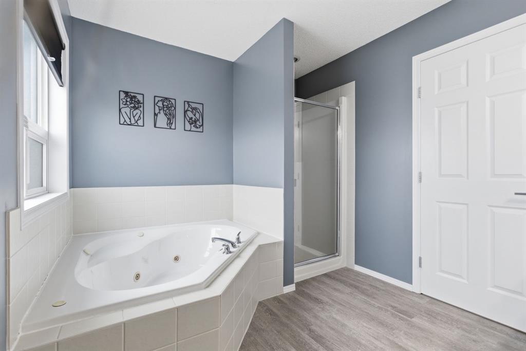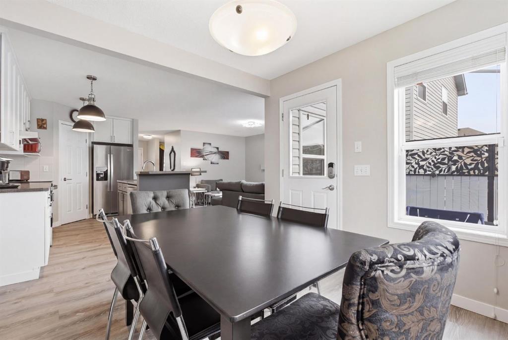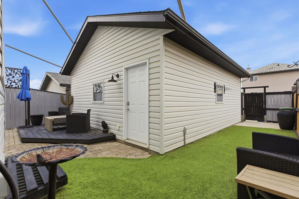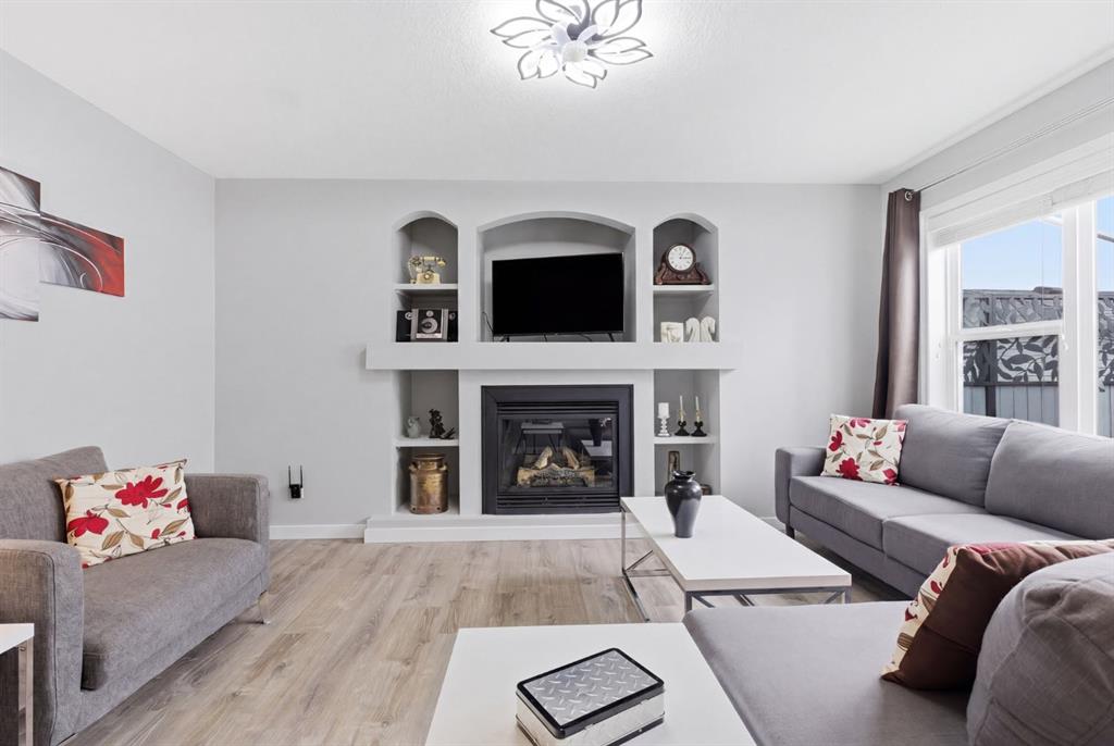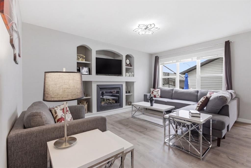 Live in the family friendly community of Cimarron. This cleverly laid out home is situated on a quiet street. As you approach you will appreciate the attractive curb appeal and inviting front porch. Throughout the home, pride of ownership is clear, with plenty of updates such as new vinyl plank flooring, new carpet, a new front door, stylish light fixtures, and an elegant railing. The kitchen is a focal point, boasting cabinets that reach to the ceiling, a tasteful tile backsplash, stainless-steel appliances, and a corner pantry for added storage. The large island seamlessly connects to the expansive living room, which features a gas fireplace with custom built in detail. Adjacent to the kitchen, the dining room is filled with natural light from numerous windows and provides direct access to your private backyard. This low maintenance yard has a large patio, artificial grass, a new fence and a double detached garage. The main floor is complete with a powder room tucked away as well as a front den, perfect for a home office, additional living room or kids’ playroom. Upstairs, you’ll find two generously sized bedrooms, a full 4-piece bathroom, and an expansive primary retreat. The primary suite is a true sanctuary, offering a large walk-in closet and a private ensuite with a luxurious jetted corner tub, separate shower and expansive vanity. The lower level is framed and prepped for easy future development. This home is ideally located within walking distance to schools, parks, pathways, shopping, and professional services. Schedule your private showing or view the virtual tour today.