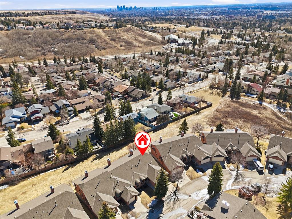 Welcome to a rare opportunity to experience villa living at its finest. Perfectly positioned on an extremely quiet street, this outstanding villa backs onto a greenspace, offering you great views of downtown Calgary and the rolling hills of Edgemont. It is a setting designed for peace and tranquillity, yet it keeps you wonderfully connected to the city you love. Constructed with both quality and lifestyle in mind, this home is sure to make you feel right at home from the moment you step into the welcoming large entry space. Directly off the foyer, you will discover a versatile flex room, which serves perfectly as a home office or as an additional main floor bedroom for visiting guests. Continuing on the main level, you will find the spacious primary bedroom, a true retreat complete with a great ensuite for your comfort and privacy. Moving into the heart of the home, you will be memorized by the soaring vaulted ceilings that create an incredible sense of space and openness. The layout flows effortlessly from the formal dining area into the living room, where a gas fireplace adds a touch of warmth and elegance. Huge windows in the living room invite a tremendous amount of natural light, making the space feel bright and cheerful all day long. Just off the living room, you will step into your large, private kitchen. Here, a cheerful sunshine ceiling brightens the space, and a welcoming breakfast nook provides the perfect spot for casual dinners. When you are ready to embrace the outdoors, step out from the nook onto your huge upper patio. You will instantly feel at peace as you listen to the soothing sounds of birds chirping and take in the serene view. The lower walkout level is fully finished and designed for both relaxation and function. It features a fantastic family room with the home’s second gas fireplace, creating a cozy atmosphere for movie nights or quiet evenings. Two additional bedrooms, a full bathroom with an updated shower, and a huge storage room complete this level. The true highlight, however, is the massive lower deck, which steps directly out to the greenspace you back onto. It is the perfect spot for the kids or grandkids to explore and play while you relax nearby. This home has been extremely well kept and lovingly cared for by its owner for over two decades. It is now ready for new owners to make it theirs and create many memorable memories for years to come. Some of the other thoughtful features include central air conditioning for year-round comfort, in-floor heating in the lower level, distiller for your drinking water and of course the maintenance-free oversized patio and deck, as well as some updated windows and plumbing. You will also appreciate being part of a very well-managed villa complex with affordable condo fees. If you are looking for a great villa in a quiet complex within the wonderful community of Edgemont, with easy access to groceries and shops. Come and experience the effortless lifestyle that awaits you.