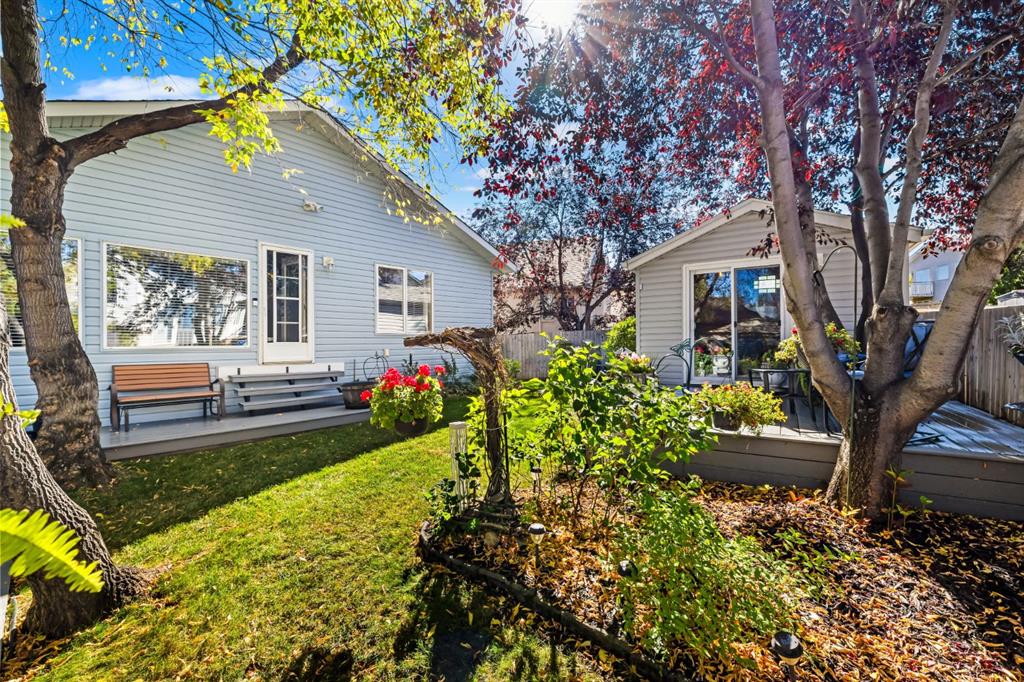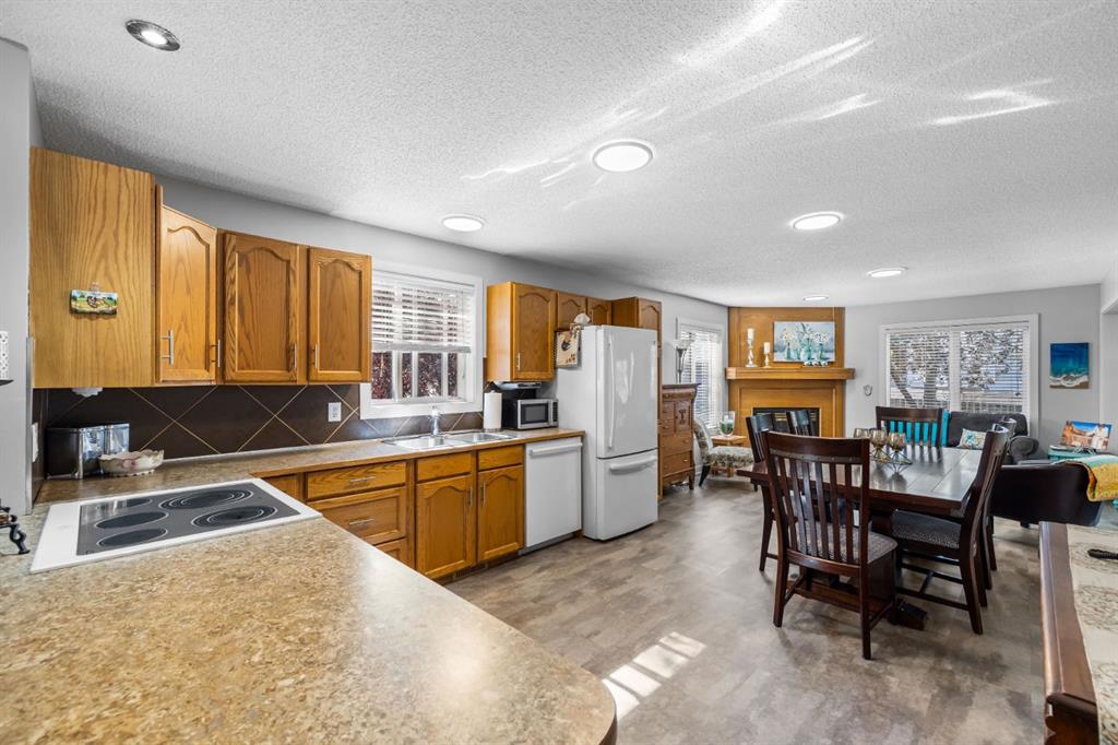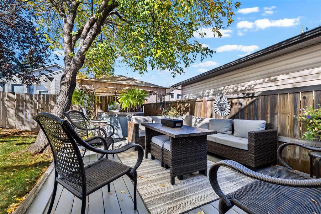 Step into this spacious and inviting bi-level home in Harvest Hills, offering over 2,800 sq. ft. of living space with a thoughtfully designed layout that blends comfort and flexibility. The main floor greets you with a bright living room and a cozy family room with gas fireplace, centered around a functional kitchen and dining space ideal for family gatherings. The private primary suite features a walk-in closet and a convenient 3-piece ensuite, while two additional bedrooms and a full 4-piece bath complete the level. Downstairs, the fully developed lower level adds incredible versatility with a generous rec room anchored by a gas fireplace, a second full kitchen and dining space, two large bedrooms, and another full bathroom—perfect for extended family or guests. Outside, discover a backyard oasis with mature trees, manicured landscaping, and multiple deck areas designed for entertaining or relaxation. A unique cabin-style tea house/shed provides an extra getaway space to unwind, host, or pursue hobbies year-round. With a double attached garage, ample storage, and a quiet location close to schools, parks, shopping, and major routes like Deerfoot Trail, this home truly offers the best of both everyday living and special retreat-like charm. Whether you’re looking for room to grow, space for multi-generational living, or a property that stands out with its one-of-a-kind backyard retreat, this Harvest Hills gem is move-in ready and waiting for its next chapter.