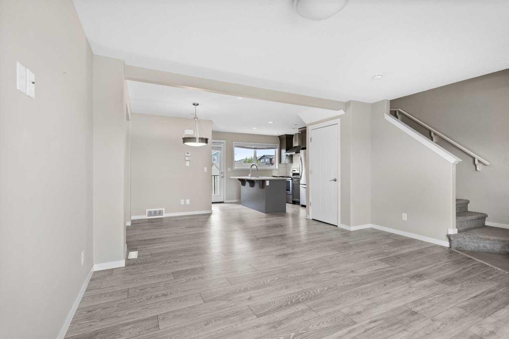 Welcome to Livingston, where luxury and comfort meet in this stunning detached home located in a highly sought-after community. Step inside this beautiful property boasting over 1200 sq ft of living space spread over two storeys, featuring 3 bedrooms, 2.5 bathrooms, and situated across from green space. As you enter, the main floor welcomes you with beautiful vinyl flooring and an abundance of natural light streaming in through the large west facing windows, illuminating the spacious kitchen, living room, and dining area. The modern kitchen is equipped with stainless steel appliances, stone countertops, dark cabinetry, and a huge island. Ascend upstairs to find three well-proportioned bedrooms, including the primary bedroom, which is complete with a 4-piece ensuite and a walk-in closet. Outside, the private backyard is perfect for entertaining with a spacious deck ideal for barbecuing and soaking up the summer sun. The large parking pad in the back provides ample parking space for multiple vehicles. Located in an exceptional location, this property offers easy access parks, playgrounds, restaurants, and shopping, providing the perfect balance between work and play. This exceptional family home is waiting for you! Don’t miss out on the chance to make this beautiful property your own and book your private viewing today!