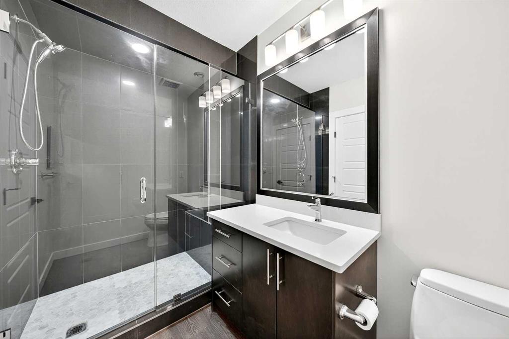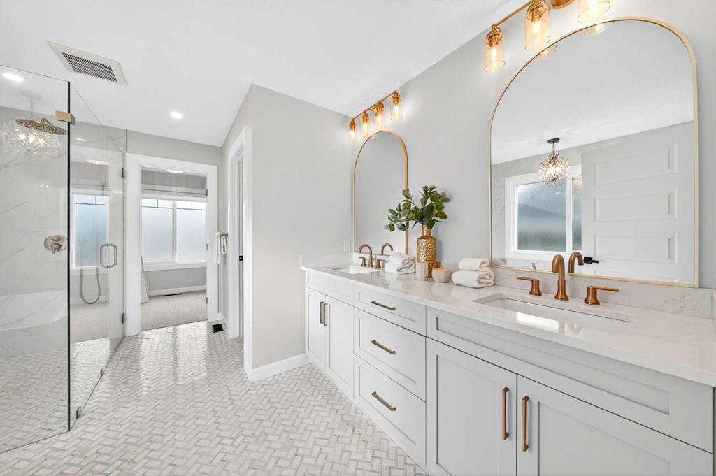On the upper level, the East-facing Primary Bedroom is a peaceful retreat with two walk-in closets and a spa-inspired 5-piece ensuite featuring a double vanity, freestanding soaking tub, and extra-large standing shower. A 9-ft-high Bonus Room, two additional Bedrooms, a full Bath, and a conveniently located Laundry Room complete this level.