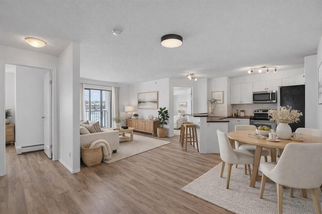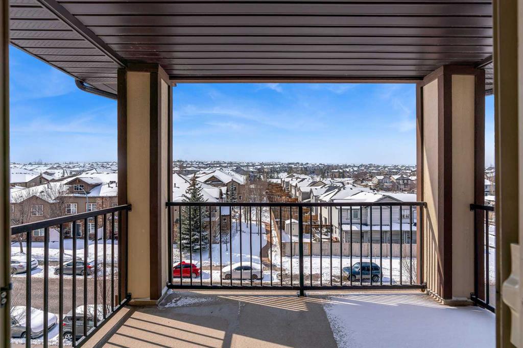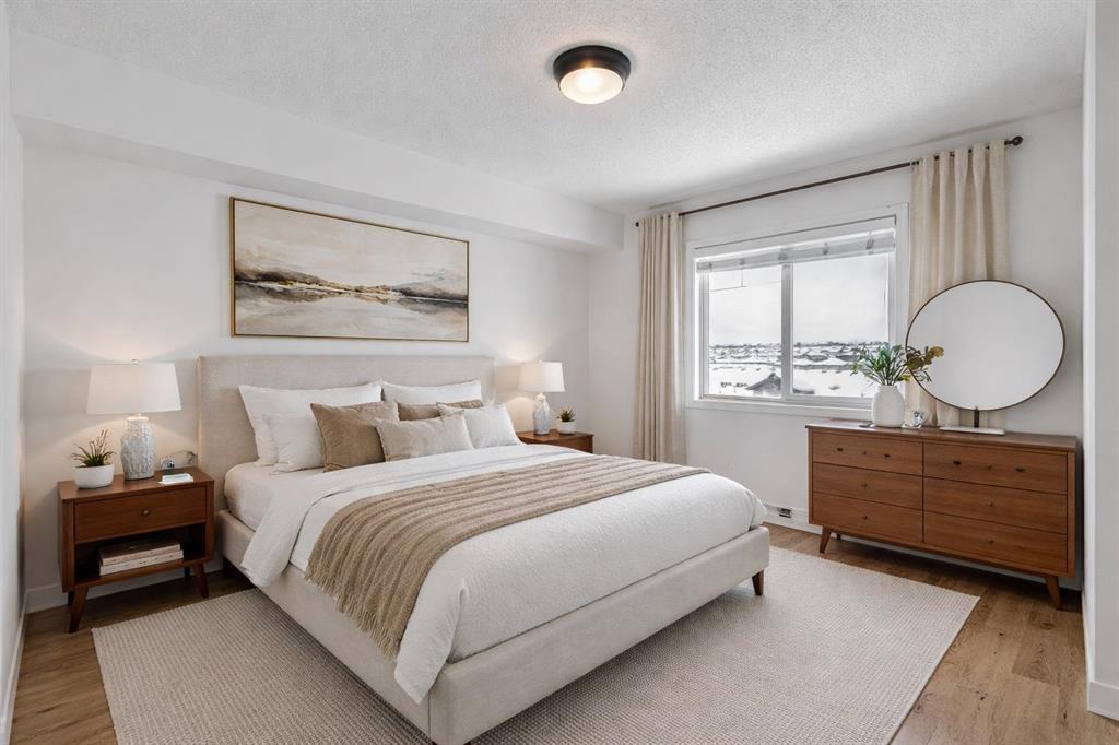 Perched on the top floor in the ever-popular community of Panorama Hills, this beautifully updated condo offers an inviting blend of comfort, style, and everyday convenience. Spanning approximately 850 sq ft, the thoughtfully designed layout strikes a perfect balance between open-concept living and well-separated bedrooms, creating a space that feels both connected and private. With LVP flooring and neutral paint tones, the home presents a clean, modern feel from the moment you step inside. The kitchen is both practical and polished, featuring generous counter space, a raised breakfast bar ideal for casual dining or hosting, and a full stainless steel appliance package. The west-facing orientation fills the home with natural light throughout the afternoon and evening, offering beautiful sunset views from both the living area and the oversized covered balcony. Whether you’re unwinding after a long day or hosting friends for a summer BBQ, this outdoor space is a true extension of the home. The primary bedroom is a comfortable retreat, complete with a walk-through closet and a private 4-piece ensuite. A second bedroom, also west-facing, is bright and versatile—ideal for guests, a home office, or additional living space. In-suite laundry with extra pantry and storage options adds to the home’s everyday functionality.