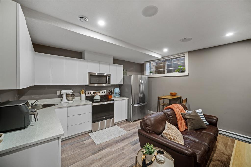 LEGAL BASEMENT SUITE | RENTED FOR $2,000/MONTH | 5 BEDROOMS | 3.5 BATHROOMS | 10 FT CEILINGS | MODERN FINISHES | LANDSCAPED BACKYARD This beautifully designed home in Montgomery now includes a brand new legal basement suite, fully self-contained and currently rented for $2,000 per month with a tenant happy to stay. Whether you’re looking for a mortgage helper, an investment property, or extra space for extended family, this home offers incredible value. With over 2,500 square feet of living space, the main home features an open-concept design with 10-foot ceilings, hardwood floors, and a designer kitchen complete with a large quartz island, gas stove, walk-in pantry, and built-in wine rack. The living room is bright and inviting, with a gas fireplace and direct access to the spacious back deck with a gas hookup for a BBQ, making it perfect for entertaining. Upstairs, the primary suite is a private retreat with a five-piece ensuite and a generous walk-in closet. Two additional bedrooms, a full bathroom, and a convenient laundry room complete the upper level. The fully landscaped backyard is designed for relaxation and entertainment, featuring a deck wired for a hot tub, planter boxes, a fire pit area, privacy trees, and a dog run. The insulated double garage provides plenty of storage space. Located just steps from the Bow River, parks, local coffee shops, restaurants, easy access to Market Mall and the UofC/SAIT, and top hospitals, this home is in a prime location with quick access to downtown and the mountains. Montgomery is one of Calgary’s most sought-after communities, offering a balance of nature, convenience, and city life. Don’t miss this opportunity to own a stunning home with rental income potential. Book your showing today.