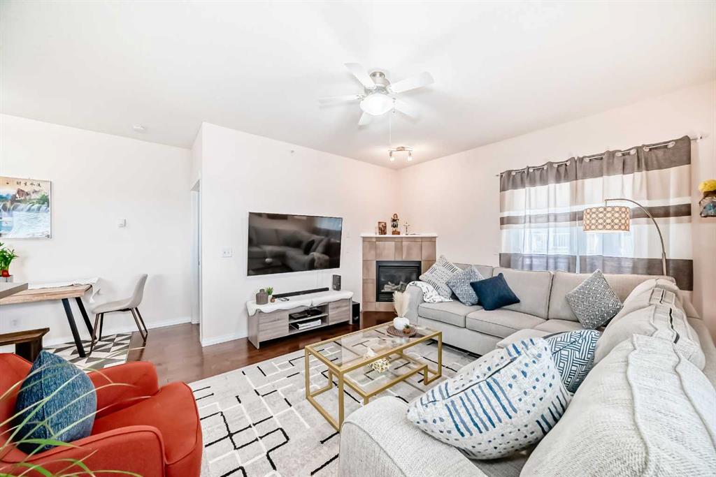 Welcome to this stunning TOP-FLOOR CORNER condo in Lighthouse Landing, offering exceptional privacy, natural light, and beautiful views from your semi-circular covered balcony. This immaculate home features 2 bedrooms and 2 full bathrooms, and an indoor underground parking, thoughtfully designed with no shared walls between bedrooms for added comfort. Inside, you’ll find a bright and spacious and functional layout highlighted by high-end engineered flooring, maple cabinetry, and stainless steel appliances. The inviting living room is anchored by a corner gas fireplace, creating the perfect space to relax or entertain, while the balcony gas line makes outdoor grilling a breeze. The main living area is warm and inviting, perfect for relaxing or hosting, while large windows bring in plenty of natural light throughout the home. The kitchen is efficiently designed with ample cabinetry and workspace, flowing seamlessly into the dining and living areas for easy everyday living. This home features two well sized bedrooms, including a primary retreat complete with its own ensuite and walk-in closet, offering both privacy and practicality. Enjoy your own private balcony, ideal for morning coffee or unwinding at the end of the day. With in suite laundry and a smart layout all on one level, this home is perfect for low maintenance living. Located in the highly desirable community of Country Hills Village, residents enjoy a walkable lifestyle with easy access to park, pond, shopping, restaurants, groceries (Superstore, Sobeys), medical & dental services, schools, library, public transit, and recreation, including the nearby Vivo Recreation Centre, Landmark Cinema, Commuters will appreciate quick connections to Stoney Trail and Deerfoot Trail, with CrossIron Mills just minutes away and the airport only a short drive. This is an ideal opportunity for first time buyers, downsizers, or investors looking for a property in a prime, amenity rich location. This is condo living at its finest—comfort, convenience, and style all in one.