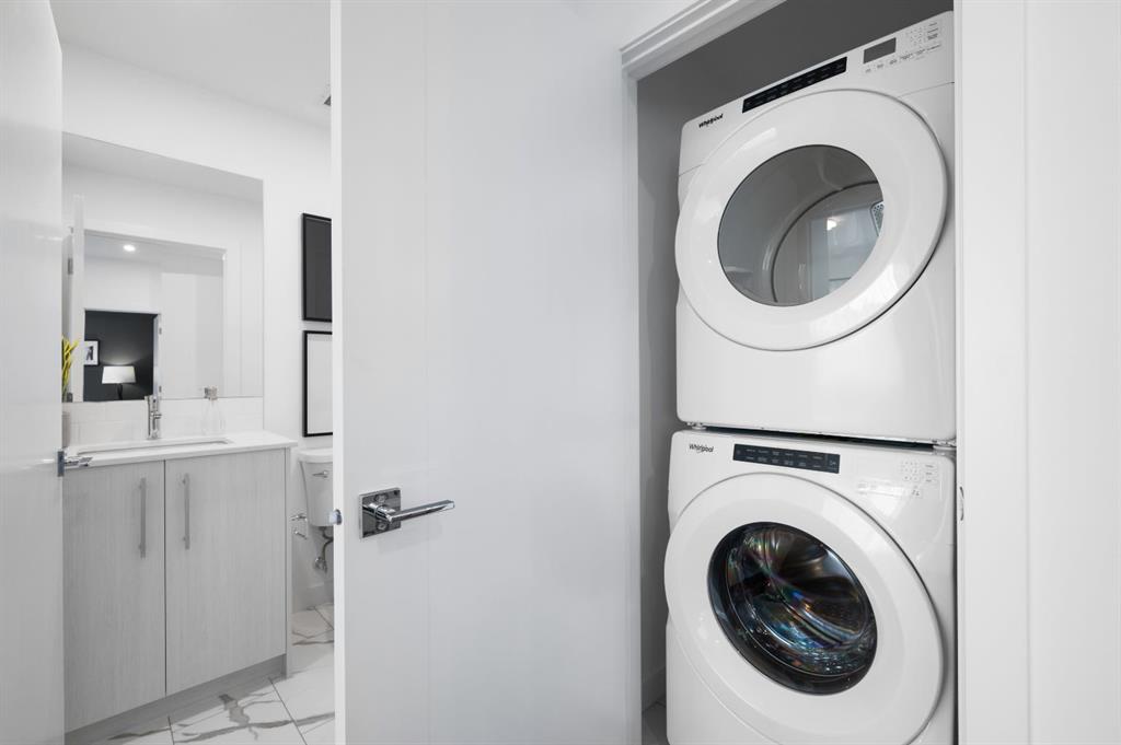Inside, you’ll find a bright, open layout with luxury vinyl plank flooring, a modern lighting package, and oversized windows that flood the space with natural light. The kitchen is designed for both function and flair, featuring stainless steel appliances, full-height soft-close cabinetry, and elegant quartz countertops — an inviting space for everything from quick weekday meals to weekend gatherings with friends.