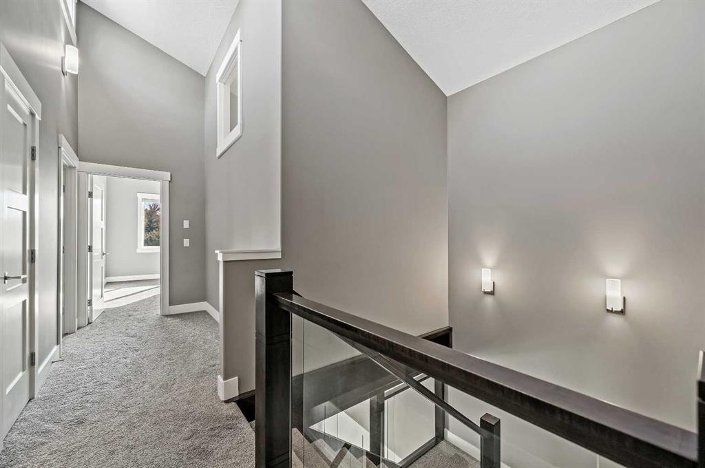 High ceilings on all three levels—including the fully developed basement— and large windows provide natural light for the open floor plans.. The main floor features textured hardwood, detailed millwork, and an architecturally striking open staircase. The gourmet kitchen, finished with granite countertops and rich dark cabinetry includes a full package of stainless Jenn-Air appliances, and dedicated water purification, centering the main level with style and practicality.