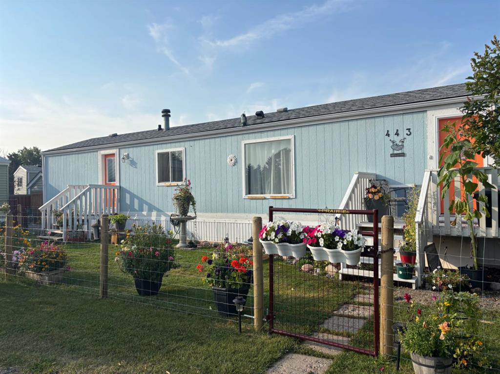 **Open House – Sunday, February 8, 1-4pm** Welcome to Homestead Acres, a sought-after, 50+ adult living community in High River. This affordable, well-cared-for 1997-built home at 443 Homestead Trail offers comfort, convenience, and a fantastic setting. Pride of ownership is evident throughout, with recent updates including a perennial garden, recent painting, new lighting and professional levelling. The bright, open living room and kitchen create an inviting space for everyday living and relaxed entertaining. The bedrooms provide flexibility for visiting family, hobbies, or a home office, with the primary bedroom featuring a private 4-piece ensuite. Enjoy the privacy of one of the largest fully-fenced yards in the park, with a sunny southern exposure—ideal for gardening or simply relaxing outdoors. The front yard is also fenced adding security and comfort if you have dog(s). A large green space just beyond the yard offers a beautiful, open view and easy access to walking paths and natural surroundings. With so much to offer at an excellent price, this home is a wonderful opportunity to enjoy comfortable, low-maintenance living.
