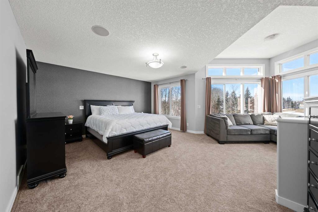 Upstairs you’ll find a vaulted bonus room ideally positioned to capture the views. The primary retreat is truly massive, featuring a generous sitting area to soak in the scenery. The ensuite features heated floors, jetted tub, oversized shower, dual vanities, private water closet and not one—but two—walk-in closets. Completing this floor are two additional generous bedrooms and a 4-piece bath.