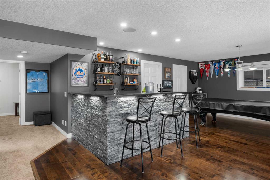The renovated walkout basement is designed for entertaining, offering a huge family/games room with stacked stone wet bar, a fourth bedroom, 3-piece bath. Step outside to the expansive patio with hot tub or toast marshmallows over the firepit whilst enjoying the view—an incredible space to relax and host.