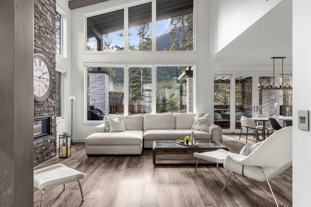 Welcome to a rare offering in one of Three Sisters’ most peaceful and private enclaves .A stunning mountain-modern single family home backing directly onto the 10th hole at Stewart Creek Golf Course. Thoughtfully designed with function, style, and environmental consciousness, this 4-bed, 4-bath residence offers over 3,500 sq ft of refined living with beautiful natural light, warm timber accents, and a true connection to the surrounding landscape.