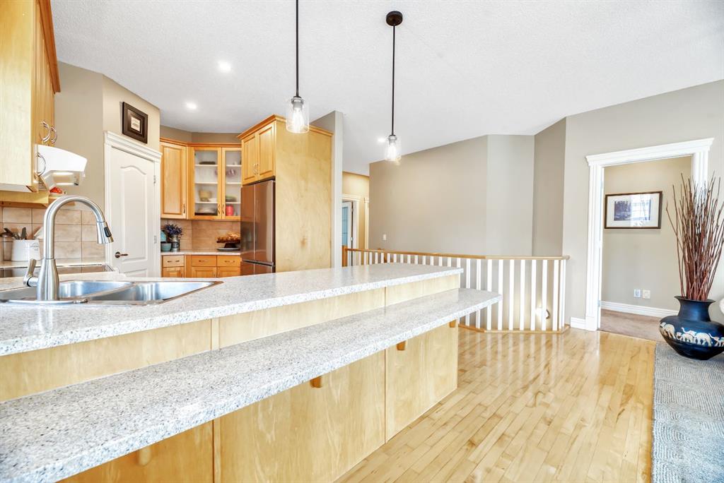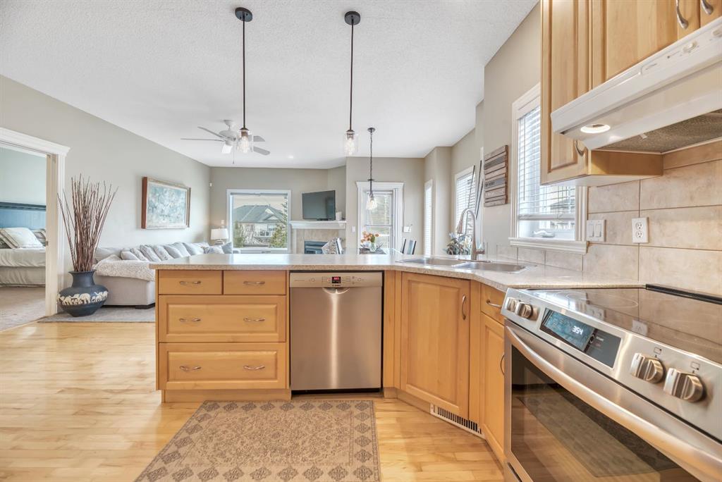 BACKING TO RAVINE & WALKING PATHS WITH LAKE ACCESS in Crystal Ridge! Welcome to this well maintained bungalow villa, ideally situated on a large corner lot in a quiet cul-de-sac and backing onto walking paths and a natural ravine. Offering both privacy and lifestyle, this home has access to Okotok’s only lake community. There’s plenty of activities around such golf course, dog park, walking/bike paths, recreation centers and of course the distinct charm and sense of community of small town living! Take in a ball game, enjoy the cute coffee shops, arts, culture and live music or a road trip to the mountains with such ease!