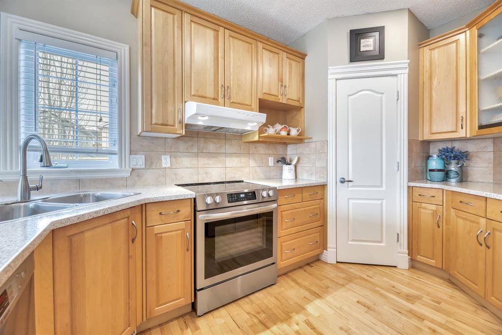 Outside, the west-facing backyard is beautifully landscaped with lots of trees, mature greenery and a private patio—perfect for relaxing or entertaining. An easy-care front yard and double attached garage with additional parking complete this exceptional property.