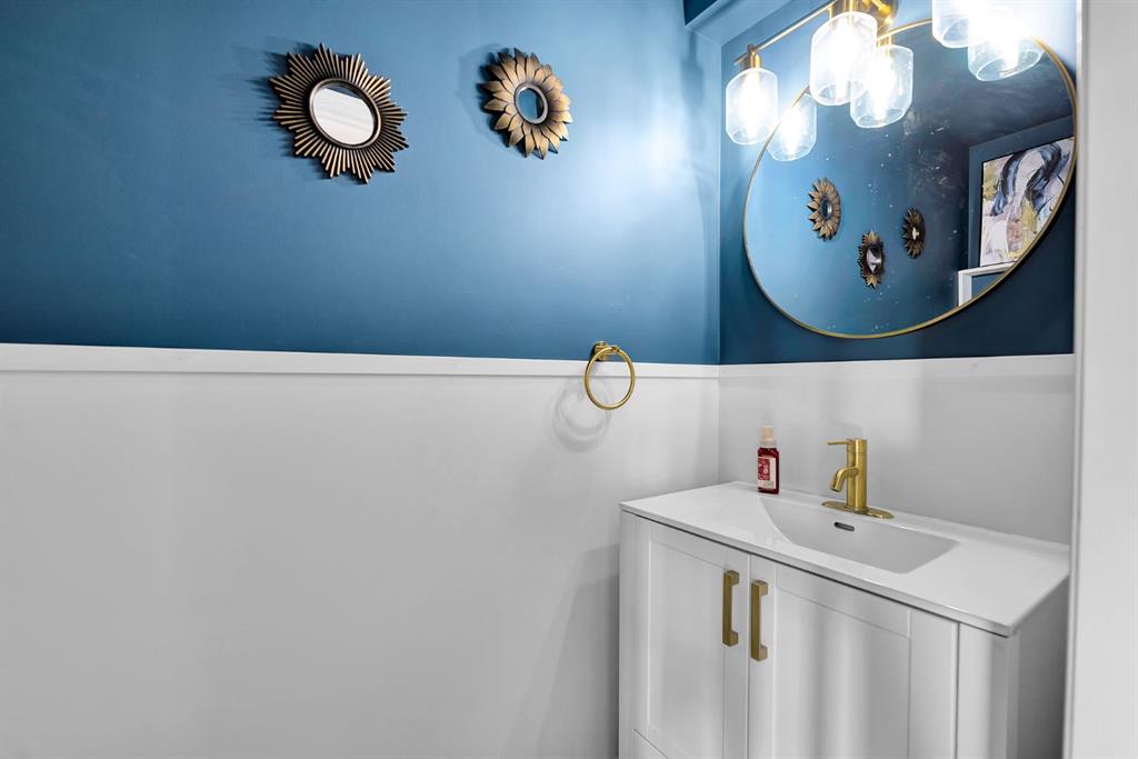 Recent interior upgrades include fresh paint throughout, updated lighting with LED fixtures, upgraded flooring throughout, upgraded stair finishes with quality vinyl plank, premium carpet in all bedrooms, upgraded toilets, and upgraded sinks taps and vanities in every bathroom except the primary ensuite. Additional updates include a replaced front porch window, updated front porch steps and railings, and added subfloor in the basement.