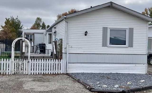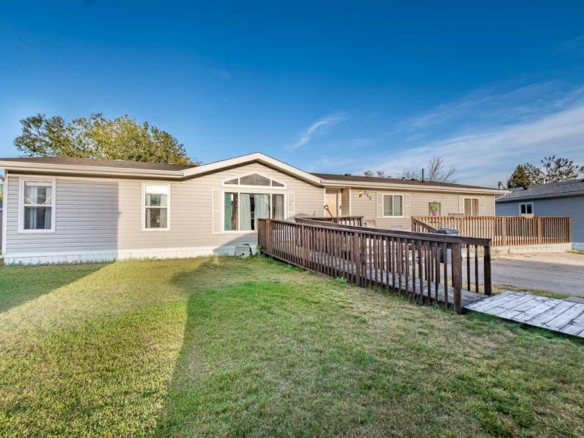 Welcome to West Park Village located in Strathmore, just 30 min east of Calgary. This bright and spacious 2 bedroom mobile home offers an open floor plan with vaulted ceiling and a comfortable flow throughout. The home was originally a 3 bedroom and can easily be converted back by re-installing the wall between the junior rooms. The large primary features a private 4 piece ensuite with soaker tub, built in cabinets along with plenty of closet space. Enjoy the sunny kitchen and living area that opens onto a generous sized deck perfect for relaxing or entertaining! Additional highlights include a 14’x 7.9′ boot or storage room (non heated) addition, air conditioning and situated on a leased lot that includes water, waste, garbage and snow removal . Fenced yard with room to garden or play with kids & pets. Conveniently located close to schools, shopping, walking paths, public library, recreation facilities and downtown amenities. Affordable living in a great community. Book a showing today and be in your new home for Christmas.
