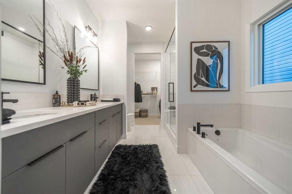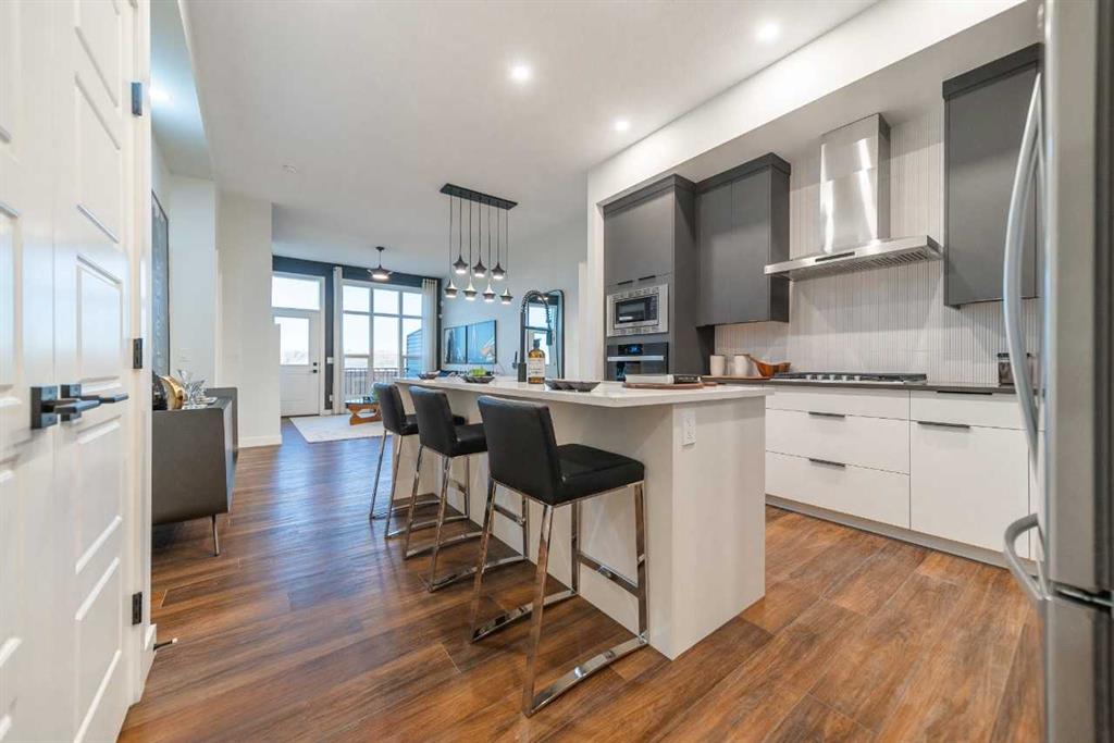 This home showcases on-trend, designer-curated interior selections tailored for a home that feels personalized to you. Energy efficient and smart home features. A beautifully upgraded home backing onto tranquil greenspace. This stunning property features an executive kitchen with built-in stainless steel appliances, gas cooktop, fridge with water and ice, a waterfall island with waste-bin pullout and a pantry with MDF shelving. Enjoy 10′ ceilings in main living areas, LVP flooring, a main floor flex room, and an electric fireplace with mantle. The primary bedroom offers wall detail, MDF shelving in the WIC, and a 5-piece ensuite with tiled walk-in shower, tile flooring, barn door, and a bank of drawers. With additional windows, black hardware, a developed stairwell, 9′ basement ceilings, and a rear deck with BBQ gasline rough-in, this home blends luxury and comfort. This energy-efficient home is Built Green certified and includes triple-pane windows, a high-efficiency furnace, and a solar chase for a solar-ready setup. With blower door testing that may be eligible for up to 25% mortgage insurance savings, plus an electric car charger rough-in, it’s designed for sustainable, future-forward living. Featuring smart home technology, this home includes a programmable thermostat, ring camera doorbell, smart front door lock, smart and motion-activated switches—all seamlessly controlled via an Amazon Alexa touchscreen hub. Photos are a representative.